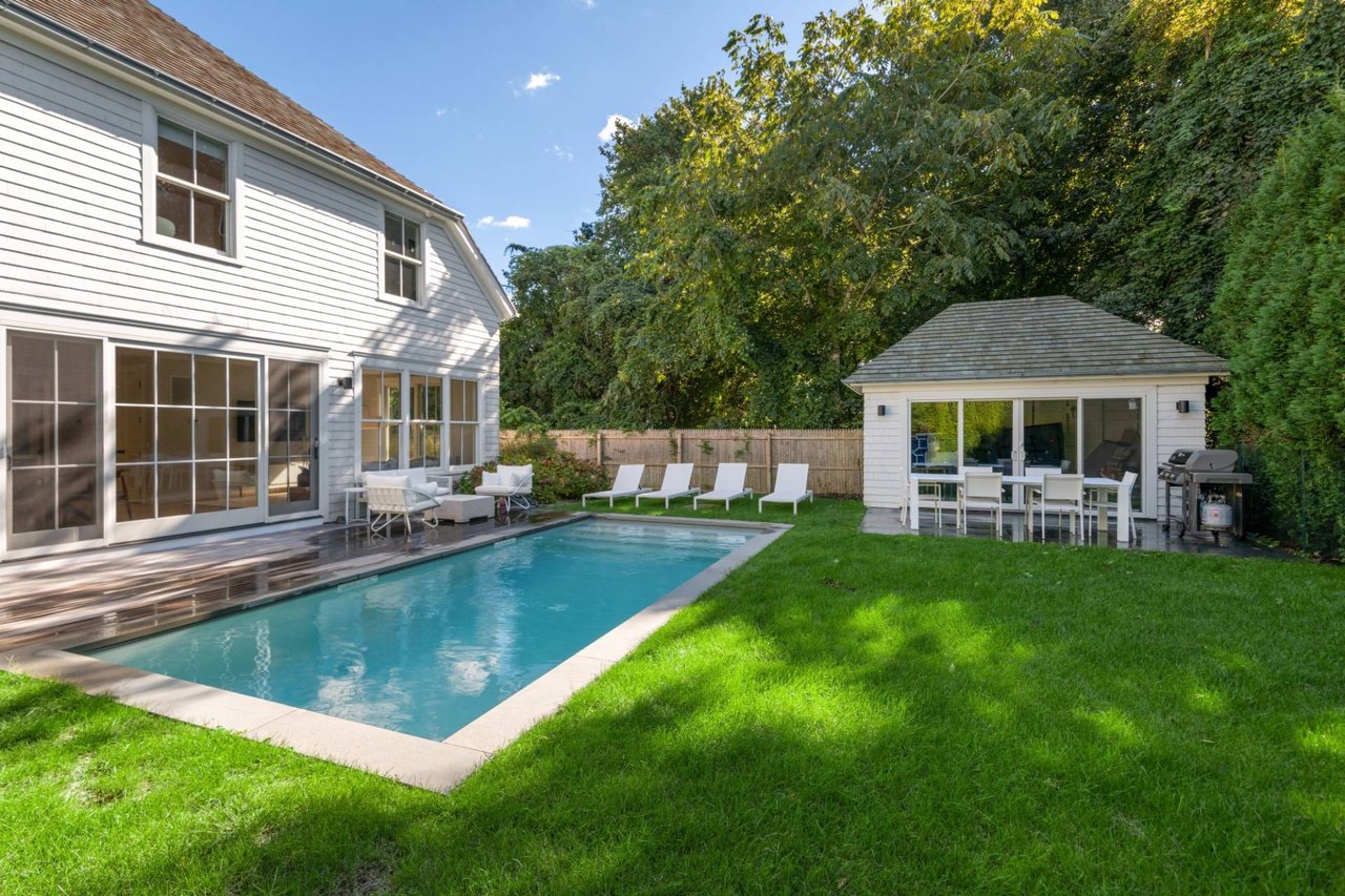 Request InfoAll the simple, summer pleasures found here. Excellent location, bike to town, dinner, and shopping while staying at this sunlit five bedroom home. First floor has two sitting areas, plus dining room, plus breakfast bar. The wall is lined with French doors displaying the in-ground pool, lounge chairs, and pool house. First floor bedroom and bathroom. Upstairs has three bedrooms, the master with a sunlit bathroom, and two guest rooms.The lower level is fully outfitted with a living area, a gym, a bedroom and bathroom. This bedroom also leads to the pool area with bright egress. Spend your summer here with convenience, access to all your favorite places, close proximity to the beach, in a bright, new, sunlit home. Rental Registry #24-921.