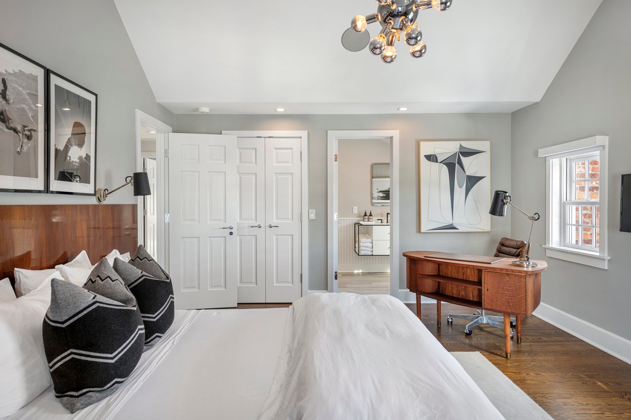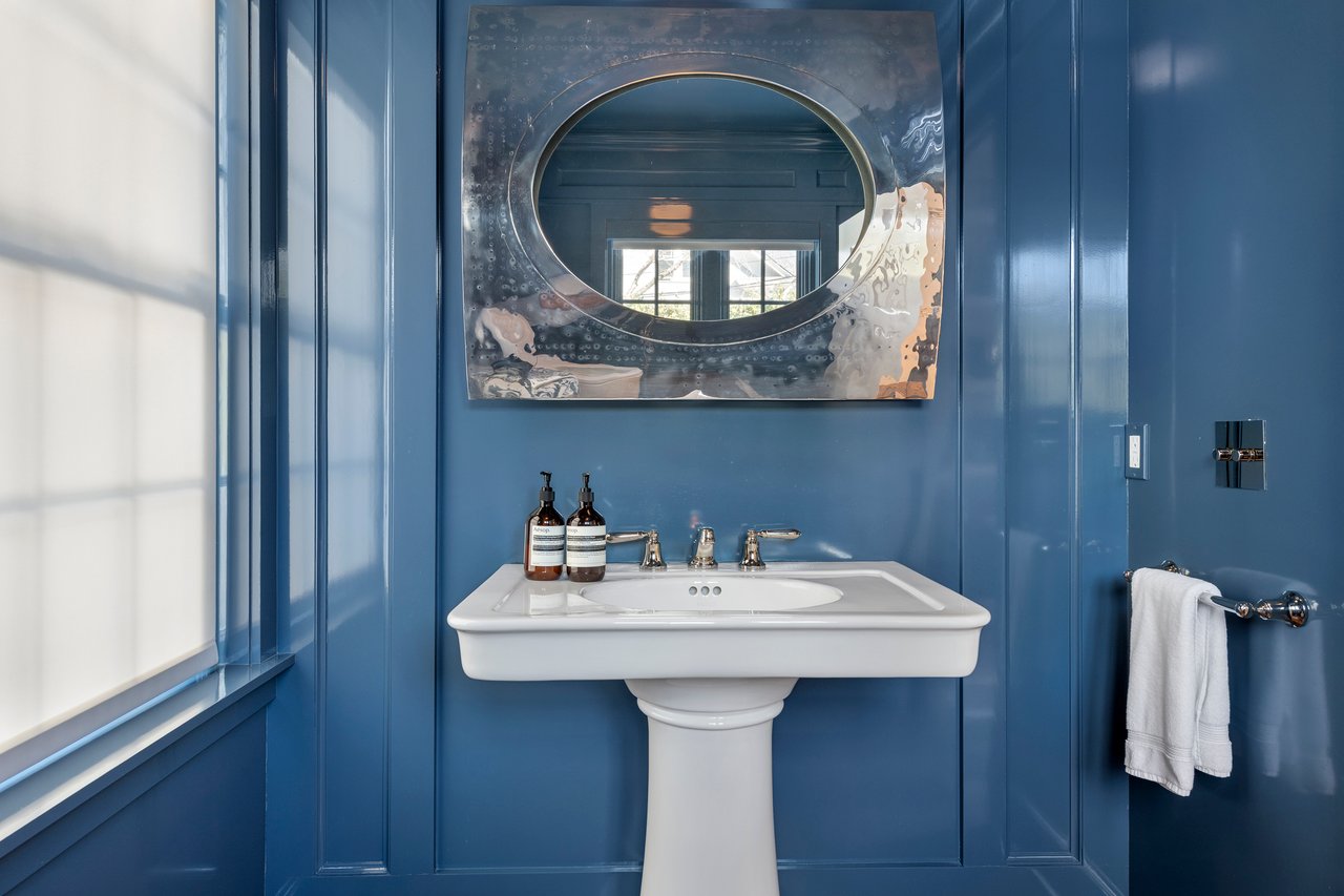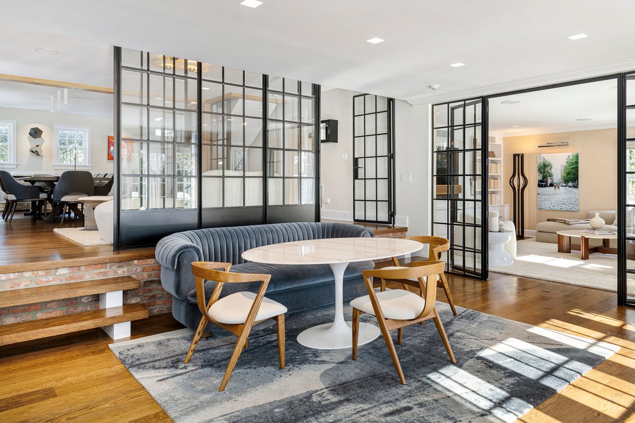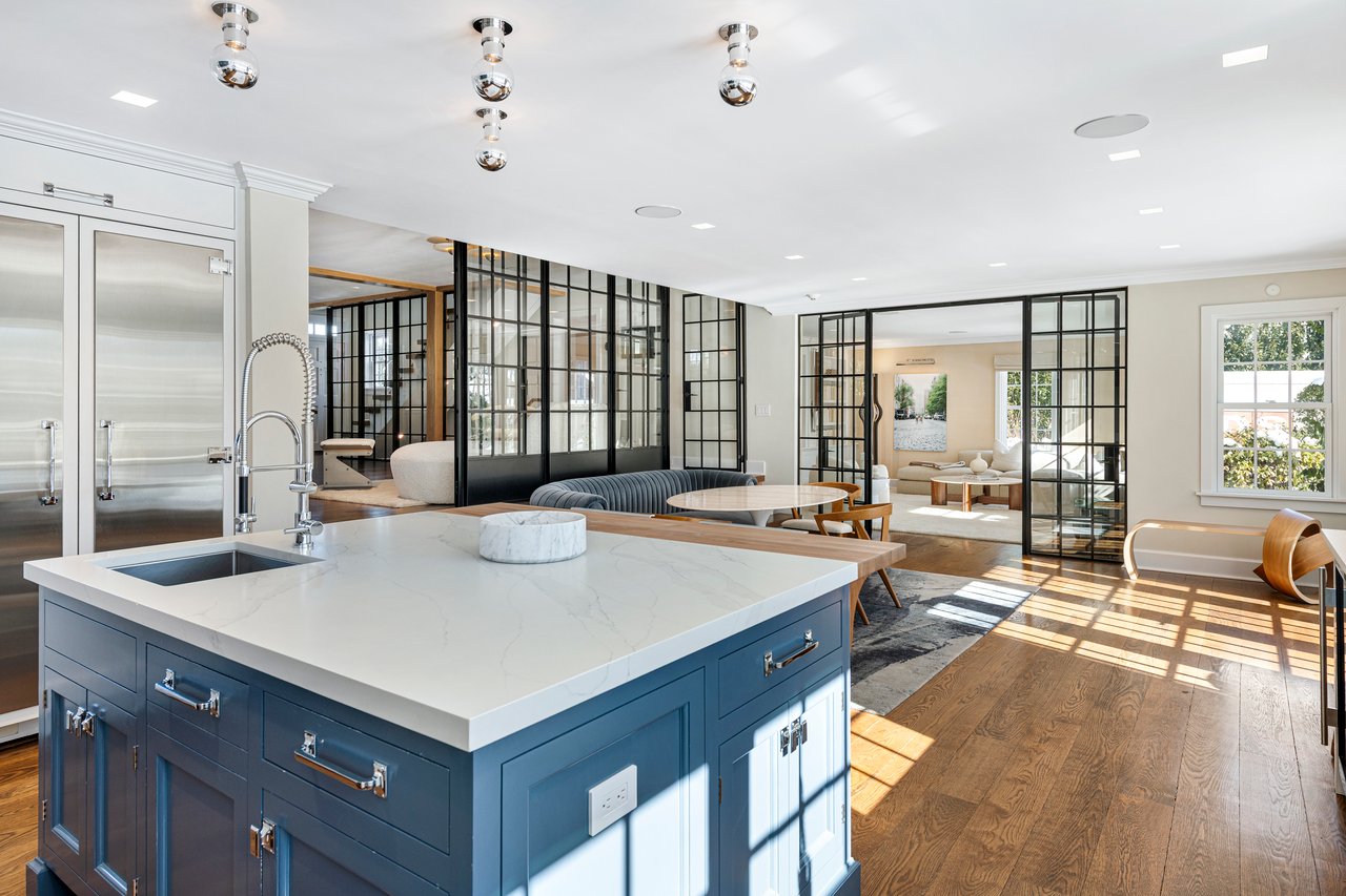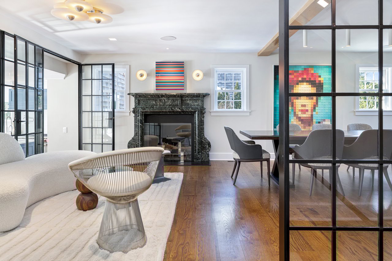 Request InfoDistinguished in both style and design, this recently renovated designer residence is truly a Village gem. Gracefully sited on a bright, sun-drenched parcel, the four-bedroom home embodies timeless elegance, equally suited to intimate daily living and sophisticated entertaining. A gracious parlor-currently styled as formal dining-offers a classic sitting area anchored by a wood-burning fireplace. Beyond, a custom Bakes & Kropp open kitchen and breakfast area are flooded with natural light from the home's prized southern exposure. English iron and glass doors provide architectural distinction throughout, complemented by curated designer lighting, leather-wrapped staircase railings, and refined custom millwork. Principal rooms flow seamlessly to the fully hedged grounds, where a heated gunite pool and a secluded outdoor dining nook create a private, resort-like retreat. Upstairs, three generously proportioned en suite bedrooms are appointed with fixtures and craftsmanship of the highest caliber. The newly completed lower level features a speakeasy-inspired bar and lounge wrapped in richly grained African Bobinga wood, anchored by a wood-burning fireplace with a Verdi Alpi marble surround. A media room and additional en suite bedroom complete the level. Modern conveniences include a Bang & Olufsen sound system and a Lutron lighting control system throughout. A pool house with a garage-style opening enhances the exceptional indoor-outdoor lifestyle. Known as the "half house" and originally constructed in 1854, this residence combines historic charm with modern luxury-moments from the finest offerings of the Village.