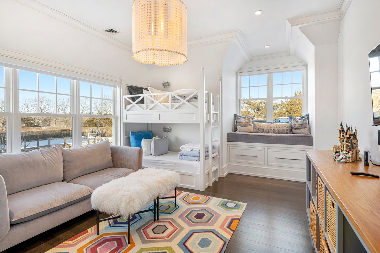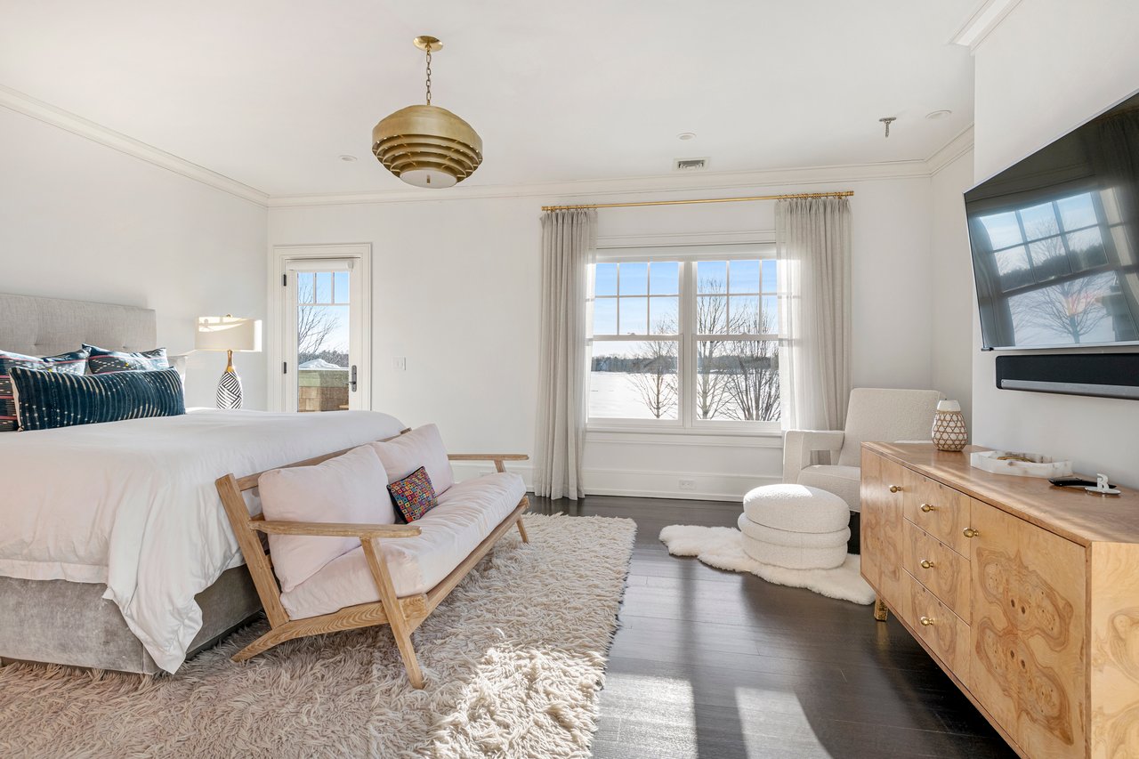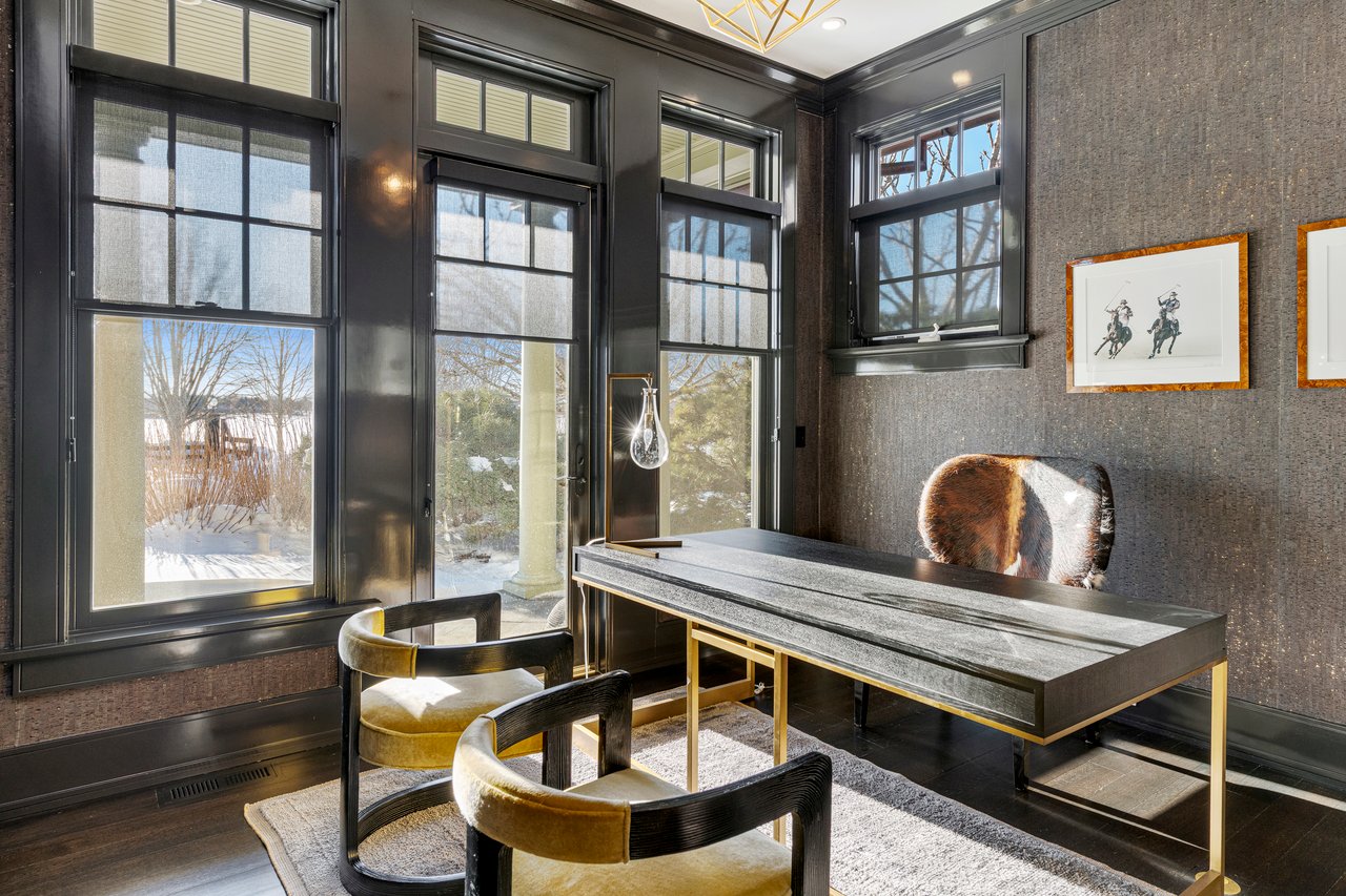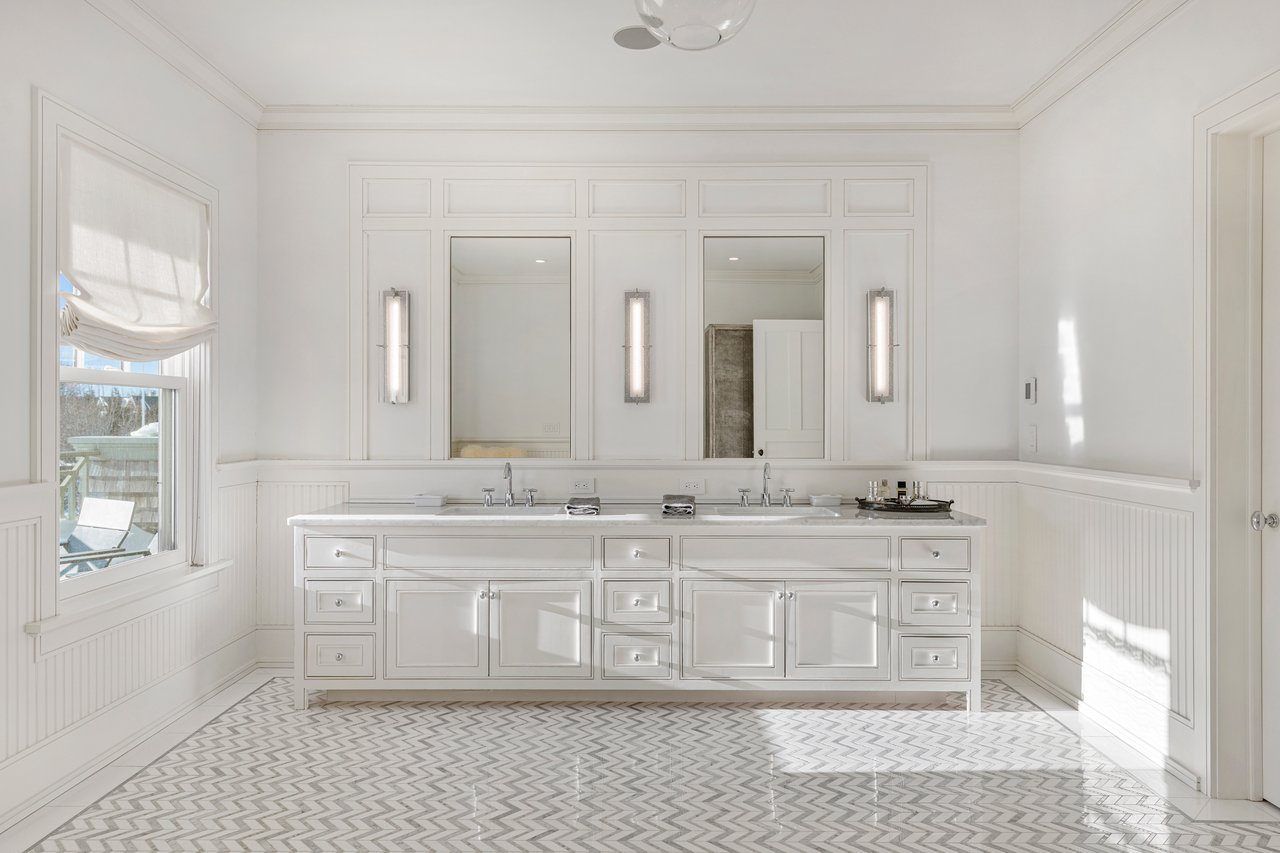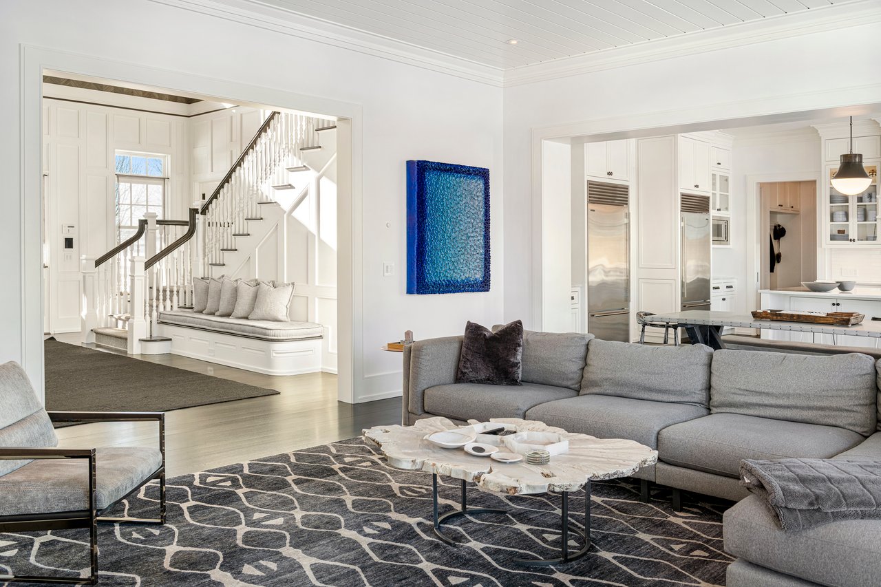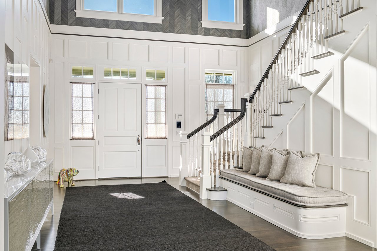 Located on one of the most prestigious lanes in Bridgehampton horse country, this grand home is sited on 1.84 acres with direct western sunset views across over sixty acres of farmland reserve. With interior design by Hamptons favorite Debra Geller, the home features eight bedrooms, eight full and one-half baths, and encompasses nearly 10,000 +/- sq. ft. across three levels, all serviced by an elevator. Upon entering the grand double-height foyer, one immediately feels the scale of the home. A large, open great room centers the entertaining spaces, with casual dining and an oversized kitchen to one side, and a sleek yet cozy den to the other. The formal dining room has direct sunset views across the polo fields, giving the sense of looking out over a vast green ocean. The first floor junior primary suite has its own covered porch, and both indoor and outdoor fireplaces. The second en-suite bedroom on this level may also serve as an office for quieter moments. Upstairs, the generously sized primary suite features an ample sitting room, a large walk-in closet, and an oversized bathroom suite with private terraces. The second level also offers three additional guest suites and one of two laundry centers. Accessed by either staircase or elevator, the finished lower level includes all the amenities one would expect: a large recreation area, wine room, gym flooded with natural light, sauna, theater, and two additional guest bedrooms. Moving outside, the grandeur of the gardens adds to the level of sophistication this property offers. Bathed in sunlight all day, there is more than enough room to experience Hamptons living. Covered porches for dining and relaxing lead out to the 20' x 50' pool with sundeck and inset spa, anchored by the pool house and outdoor kitchen. A full-size sunken tennis court is unobtrusive and set off to the side of the property, with raised produce and flower beds nearby. A true Hamptons classic, centrally located and a perfect East End getaway.