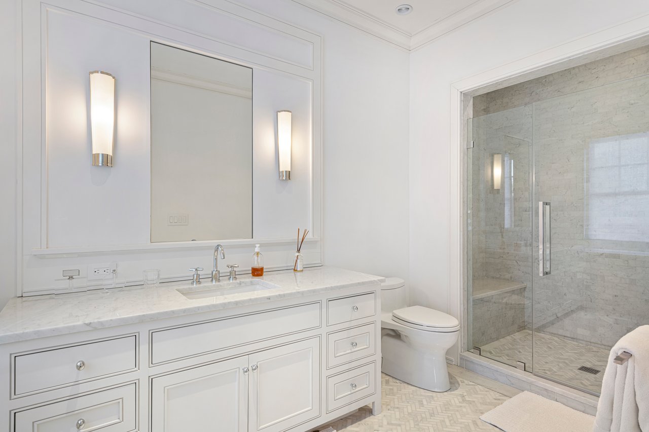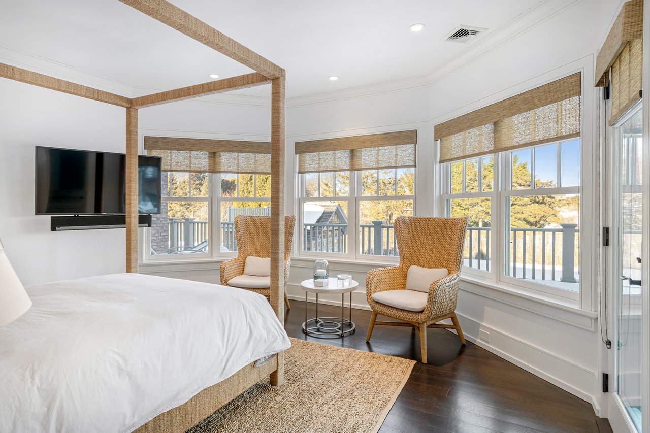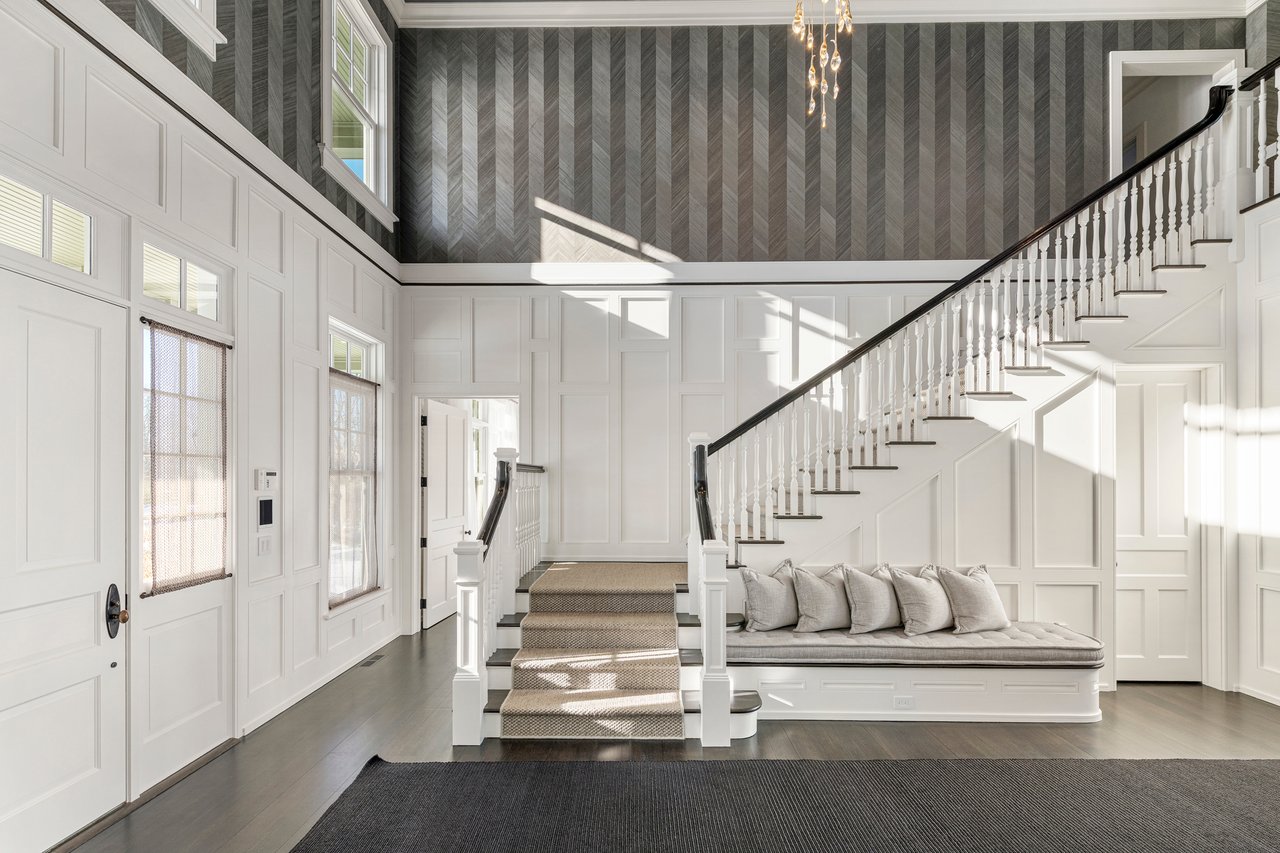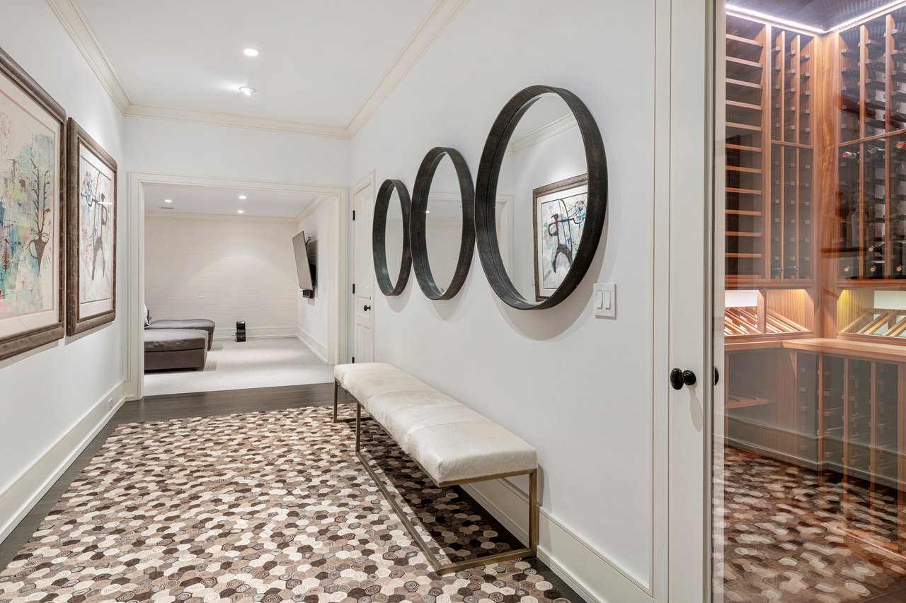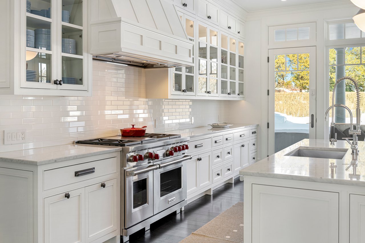 Located on one of the most prestigious lanes in Bridgehampton horse country, this grand home is sited on 1.84 acres with direct western sunset views across over sixty acres of farmland reserve. With interior design by Hamptons favorite Debra Geller, the home features eight bedrooms, eight full and one-half baths, and encompasses nearly 10,000 +/- sq. ft. across three levels, all serviced by an elevator. Upon entering the grand double-height foyer, one immediately feels the scale of the home. A large, open great room centers the entertaining spaces, with casual dining and an oversized kitchen to one side, and a sleek yet cozy den to the other. The formal dining room has direct sunset views across the polo fields, giving the sense of looking out over a vast green ocean. The first floor junior primary suite has its own covered porch, and both indoor and outdoor fireplaces. The second en-suite bedroom on this level may also serve as an office for quieter moments. Upstairs, the generously sized primary suite features an ample sitting room, a large walk-in closet, and an oversized bathroom suite with private terraces. The second level also offers three additional guest suites and one of two laundry centers. Accessed by either staircase or elevator, the finished lower level includes all the amenities one would expect: a large recreation area, wine room, gym flooded with natural light, sauna, theater, and two additional guest bedrooms. Moving outside, the grandeur of the gardens adds to the level of sophistication this property offers. Bathed in sunlight all day, there is more than enough room to experience Hamptons living. Covered porches for dining and relaxing lead out to the 20' x 50' pool with sundeck and inset spa, anchored by the pool house and outdoor kitchen. A full-size sunken tennis court is unobtrusive and set off to the side of the property, with raised produce and flower beds nearby. A true Hamptons classic, centrally located and a perfect East End getaway.