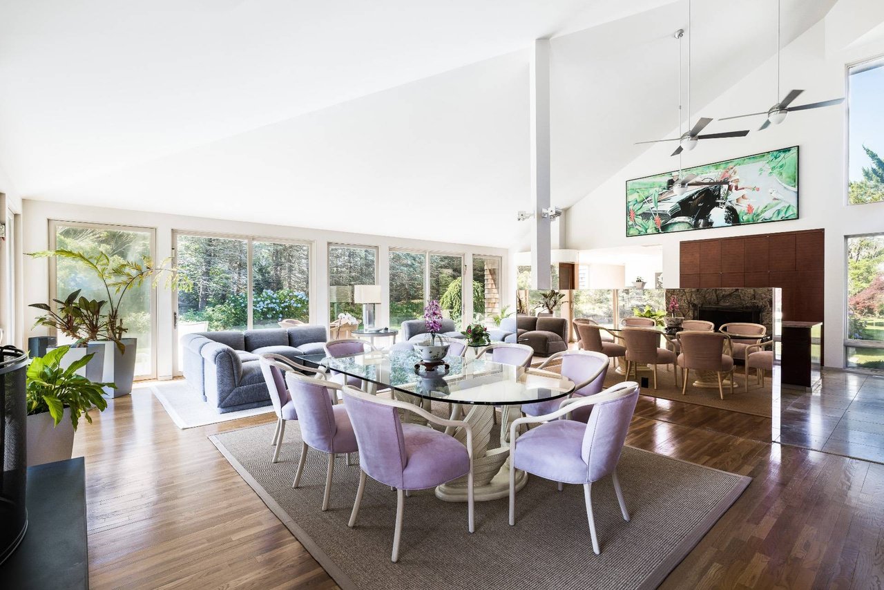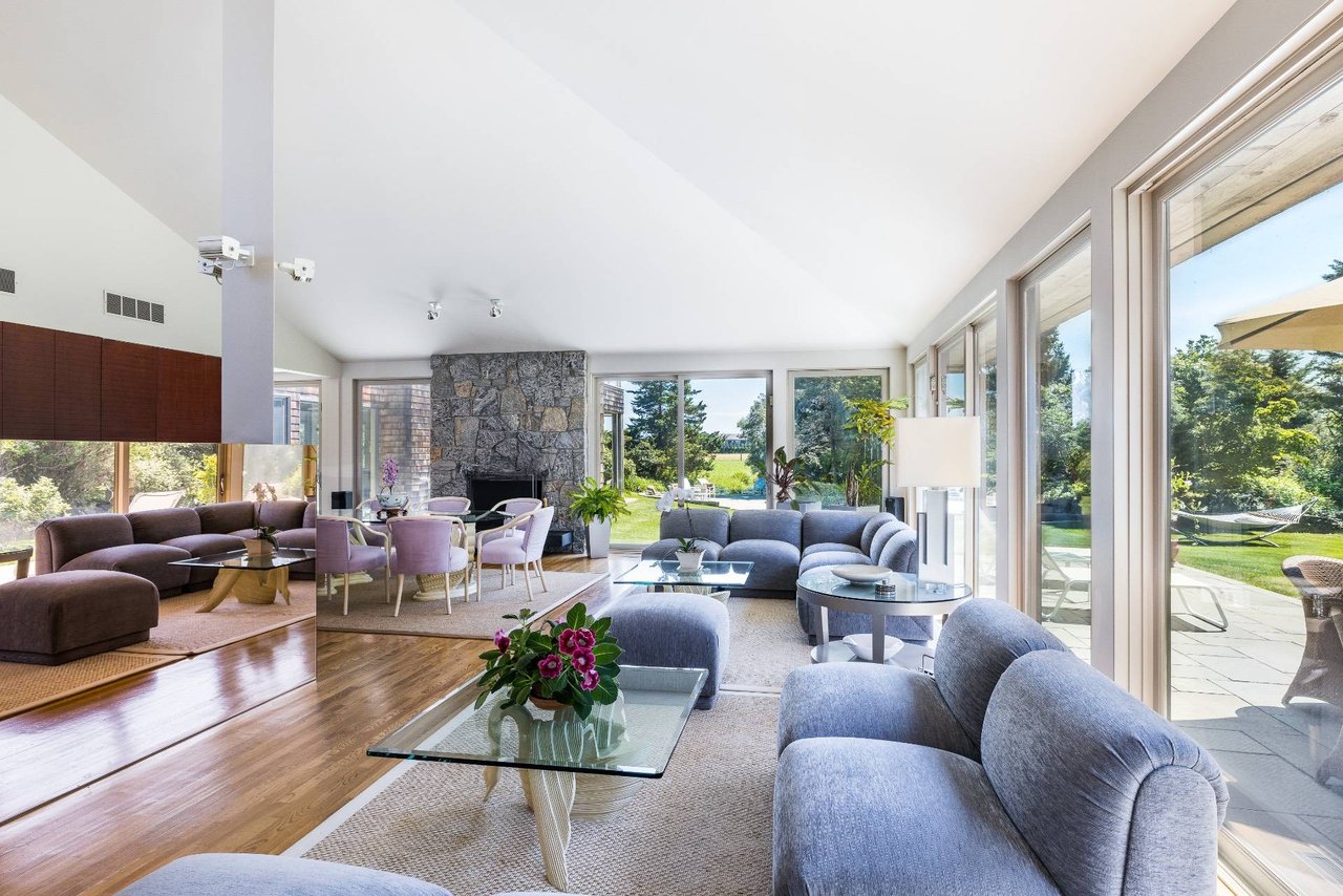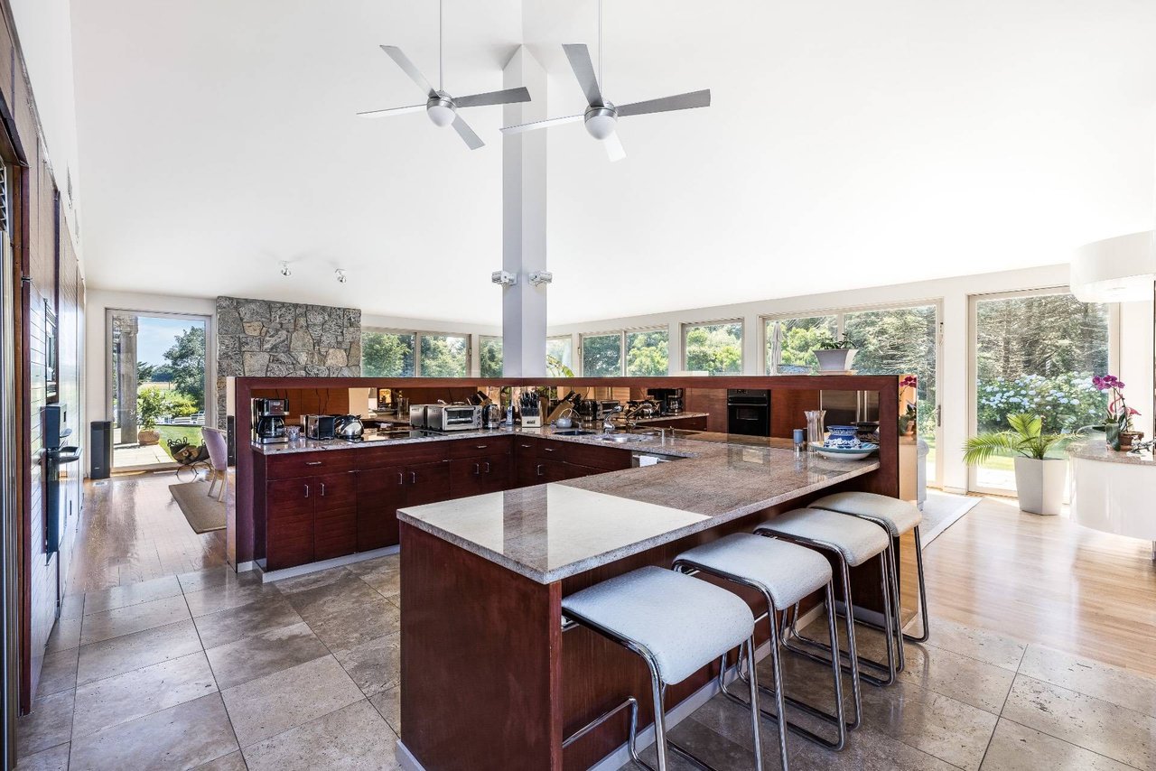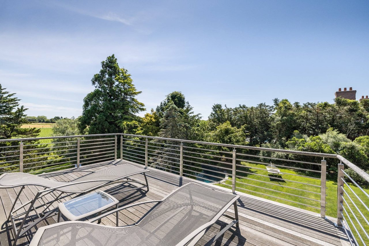 Request InfoOn a very deep 1.57+/- acre flag lot, you discover a truly unique modern home sited amongst mature specimen trees and wildflower gardens. First conceptualized by the acclaimed architecture and design team Tooker-LaFerlita, the home was fully renovated and expanded in 2006 under the direction of John Laffey. Featuring five bedrooms and six baths, the home is light, bright, and blurs the line from indoors to outdoors by use of large walls of glass and double height ceilings. In one wing, you will find an upstairs master suite with private balcony overlooking approximately 20 acres of farmland reserve. On the main level, an open kitchen, formal living, and office space are anchored by a floating staircase, with casual living, recreation space, and full wet bar for entertaining flowing out to outdoor dining with retractable screens. A separate wing accommodates guest bedrooms. In the lower level you will find a fantastic media room, additional bedroom, and full bath. Outside, a freeform pool with waterfall and eight person hot tub are set amongst mature cedar trees, and private spaces to relax abound. With its very close proximity to the beach, this south of the highway estate is a perfect vacation getaway. Available for July-LD 2025 at $225,000.