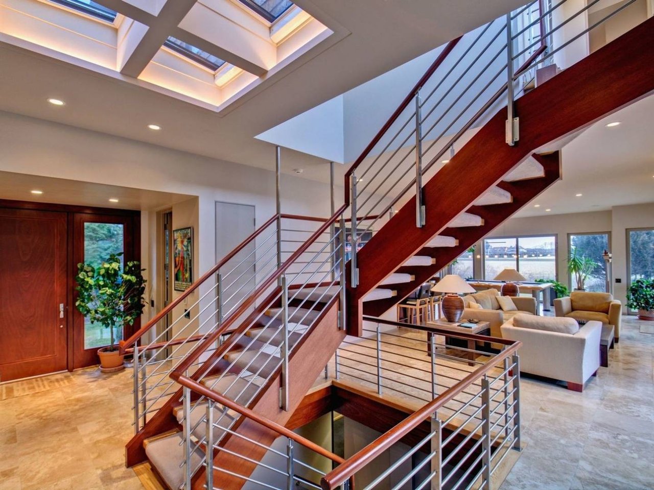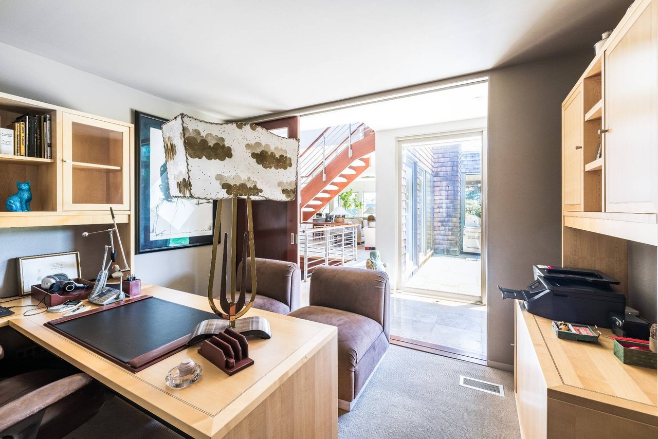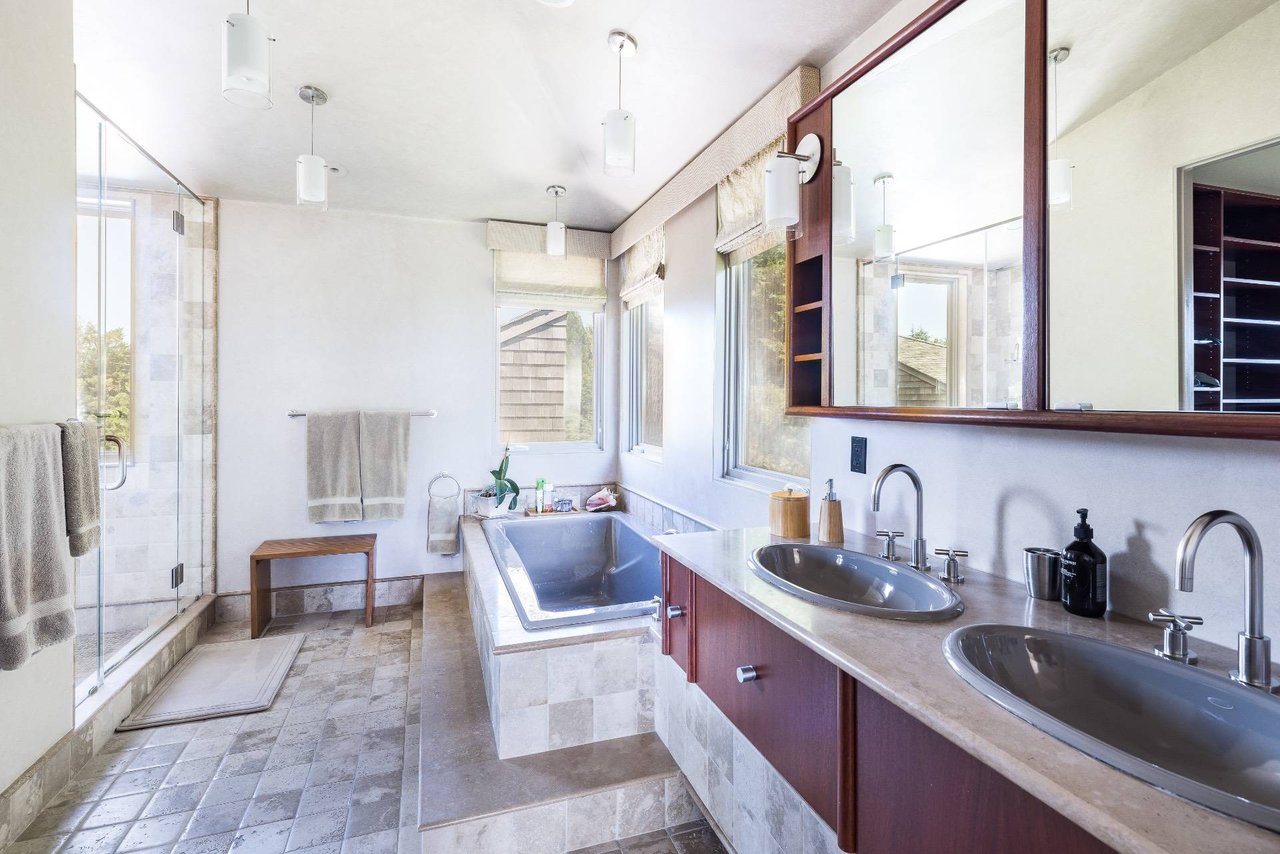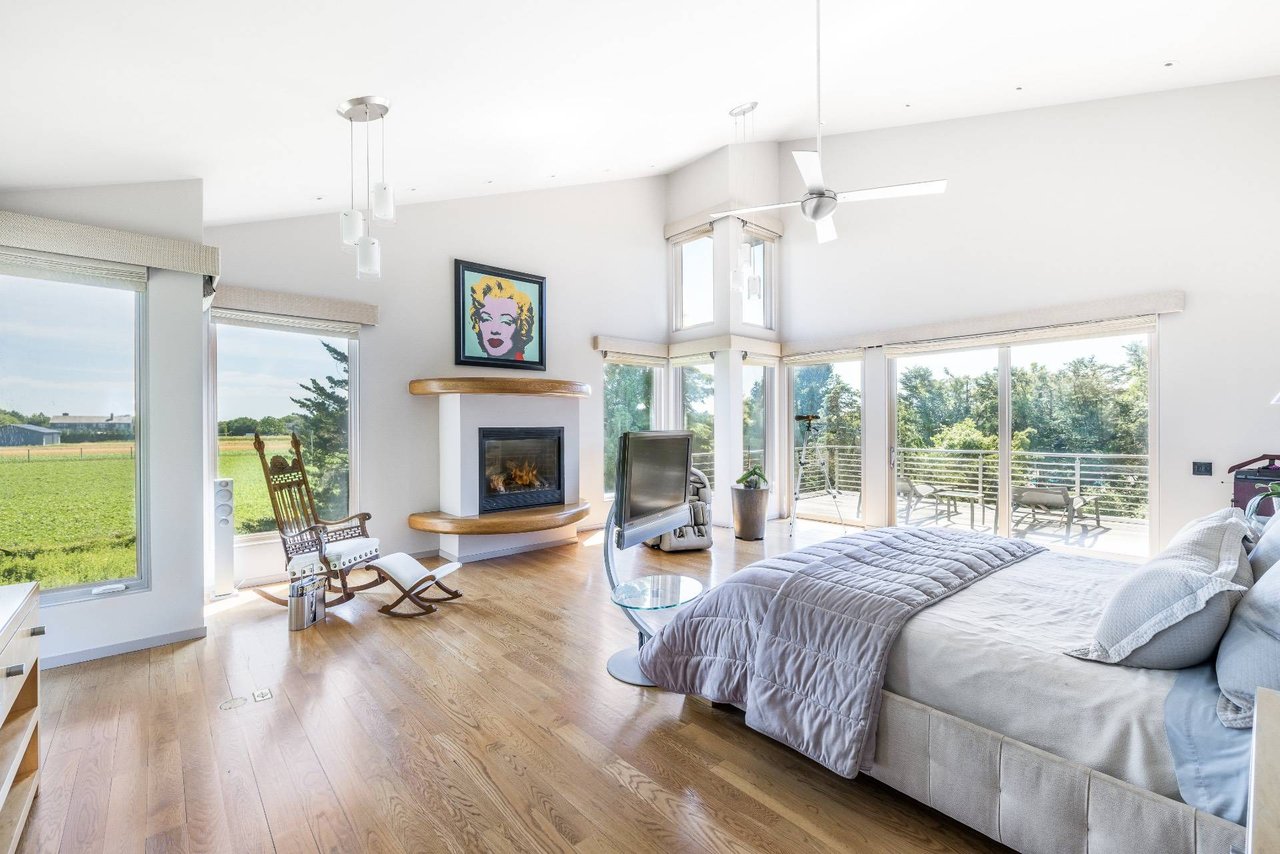 Request InfoOn a very deep 1.57+/- acre flag lot, you discover a truly unique modern home sited amongst mature specimen trees and wildflower gardens. First conceptualized by the acclaimed architecture and design team Tooker-LaFerlita, the home was fully renovated and expanded in 2006 under the direction of John Laffey. Featuring five bedrooms and six baths, the home is light, bright, and blurs the line from indoors to outdoors by use of large walls of glass and double height ceilings. In one wing, you will find an upstairs master suite with private balcony overlooking approximately 20 acres of farmland reserve. On the main level, an open kitchen, formal living, and office space are anchored by a floating staircase, with casual living, recreation space, and full wet bar for entertaining flowing out to outdoor dining with retractable screens. A separate wing accommodates guest bedrooms. In the lower level you will find a fantastic media room, additional bedroom, and full bath. Outside, a freeform pool with waterfall and eight person hot tub are set amongst mature cedar trees, and private spaces to relax abound. With its very close proximity to the beach, this south of the highway estate is a perfect vacation getaway. Available for July-LD 2025 at $225,000.