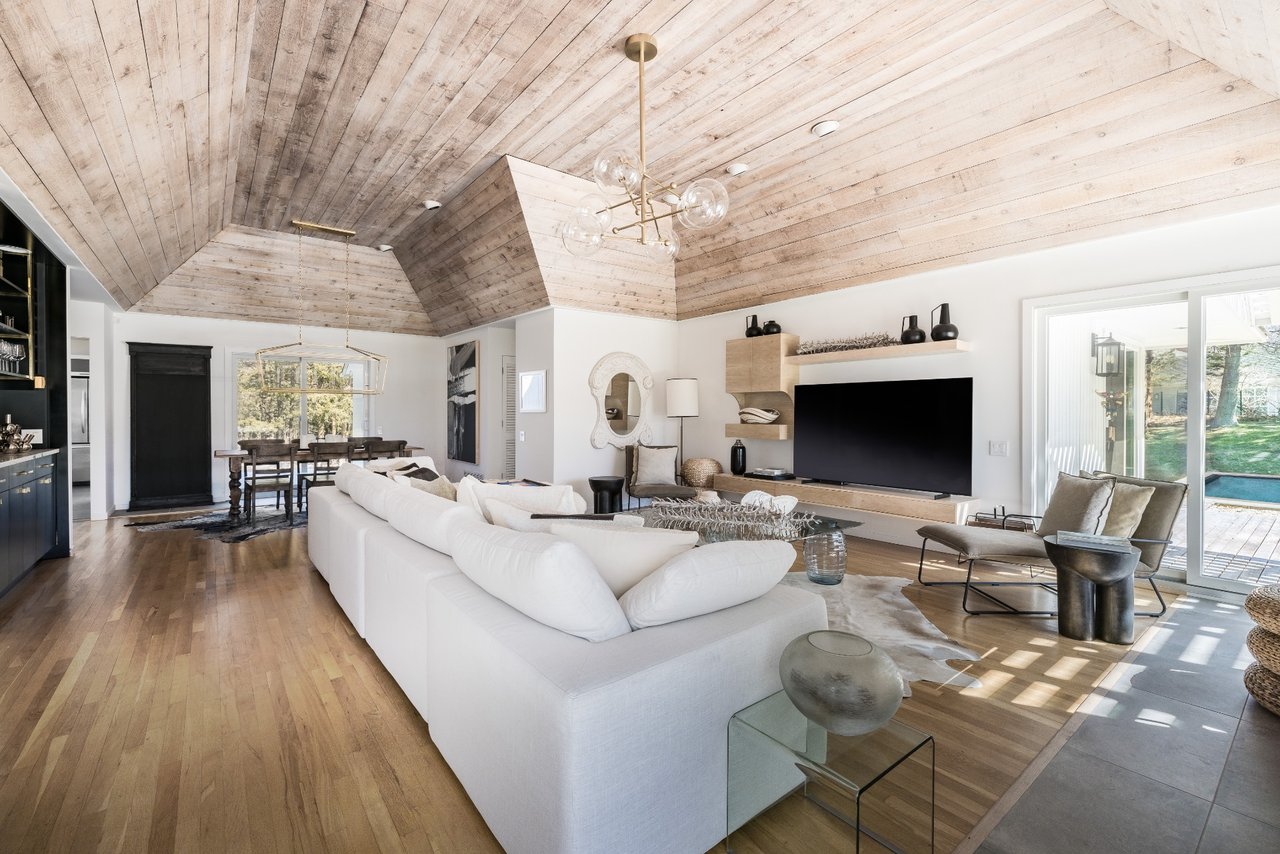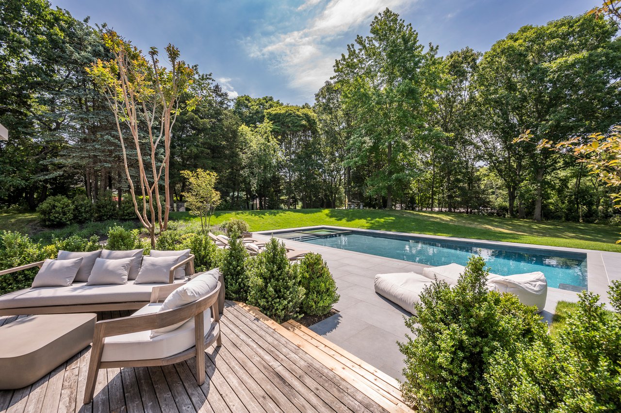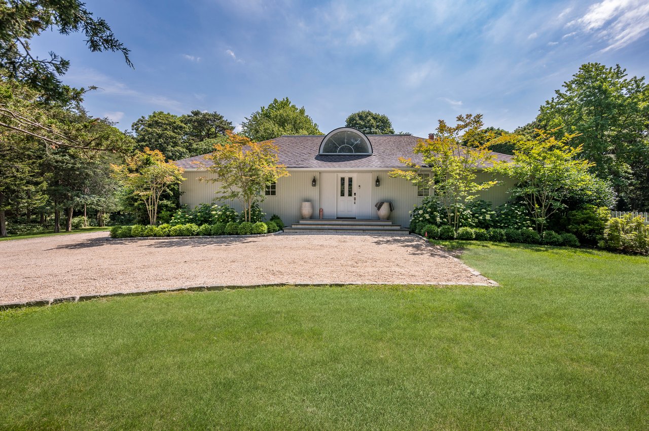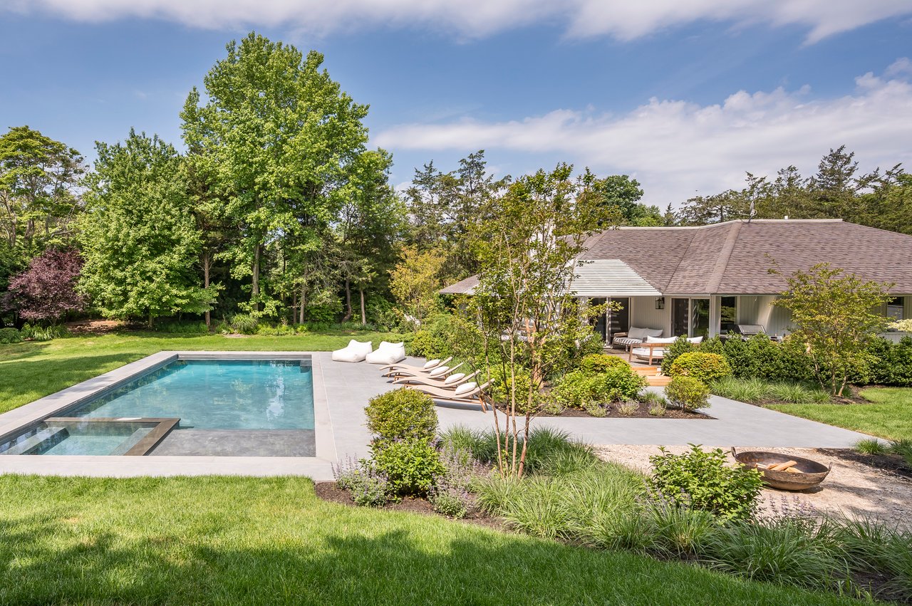 Enjoy this beautifully designed ranch featuring a brand-new Gunite pool with sundeck and spa, set on a lush, landscaped acre offering exceptional privacy. This three-bedroom home was fully redone with luxury finishes, including a vaulted cedar ceiling for a tranquil, beach-inspired feel. The kitchen includes stainless steel appliances, a waterfall granite breakfast bar, and designer-selected details. A bright marble bathroom is accessed through a hidden seamless wooden door, while the primary suite features a walk-in closet, doors to the pool, and an indoor-outdoor shower. The cedar deck wraps around the home with a covered gazebo porch, ideal for entertaining. Conveniently located near Southampton Village, Sebonac Bay Beach, premier golf courses, and transit to NYC.