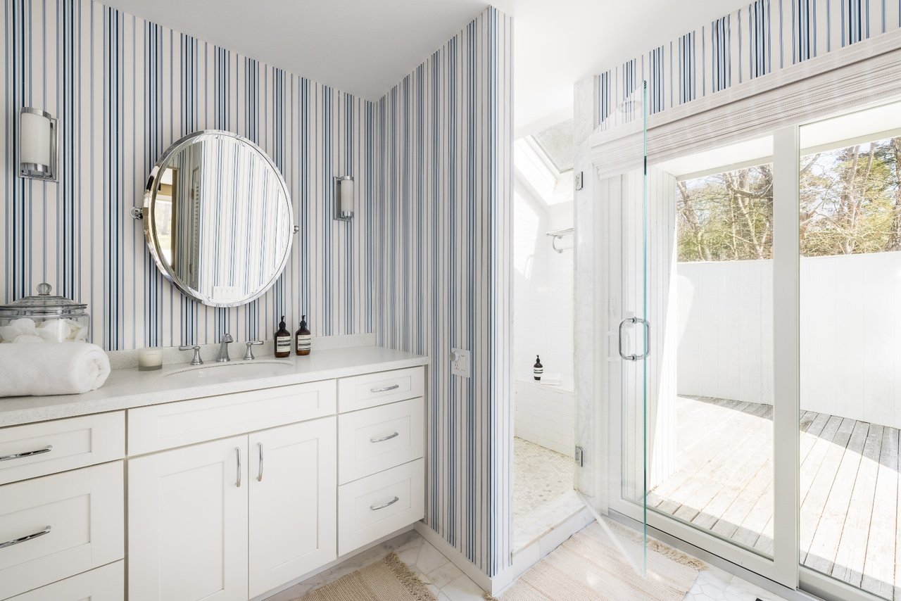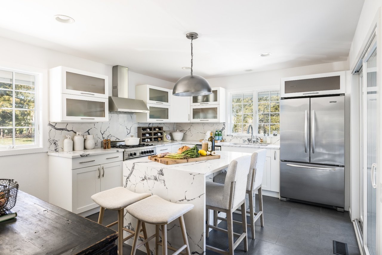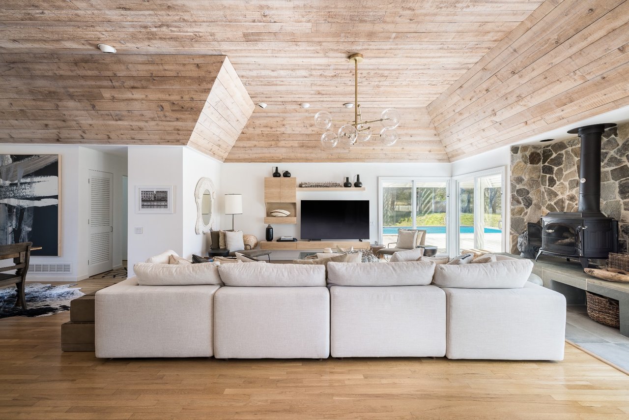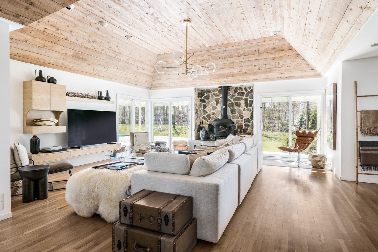 Enjoy this beautifully designed ranch featuring a brand-new Gunite pool with sundeck and spa, set on a lush, landscaped acre offering exceptional privacy. This three-bedroom home was fully redone with luxury finishes, including a vaulted cedar ceiling for a tranquil, beach-inspired feel. The kitchen includes stainless steel appliances, a waterfall granite breakfast bar, and designer-selected details. A bright marble bathroom is accessed through a hidden seamless wooden door, while the primary suite features a walk-in closet, doors to the pool, and an indoor-outdoor shower. The cedar deck wraps around the home with a covered gazebo porch, ideal for entertaining. Conveniently located near Southampton Village, Sebonac Bay Beach, premier golf courses, and transit to NYC.