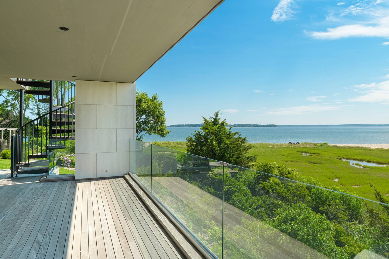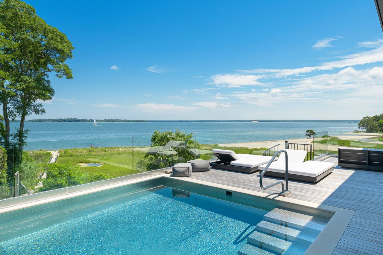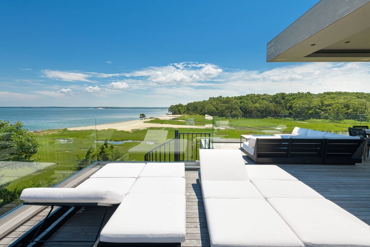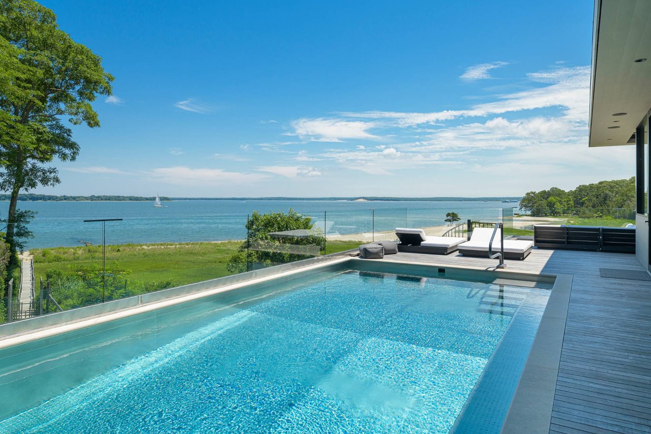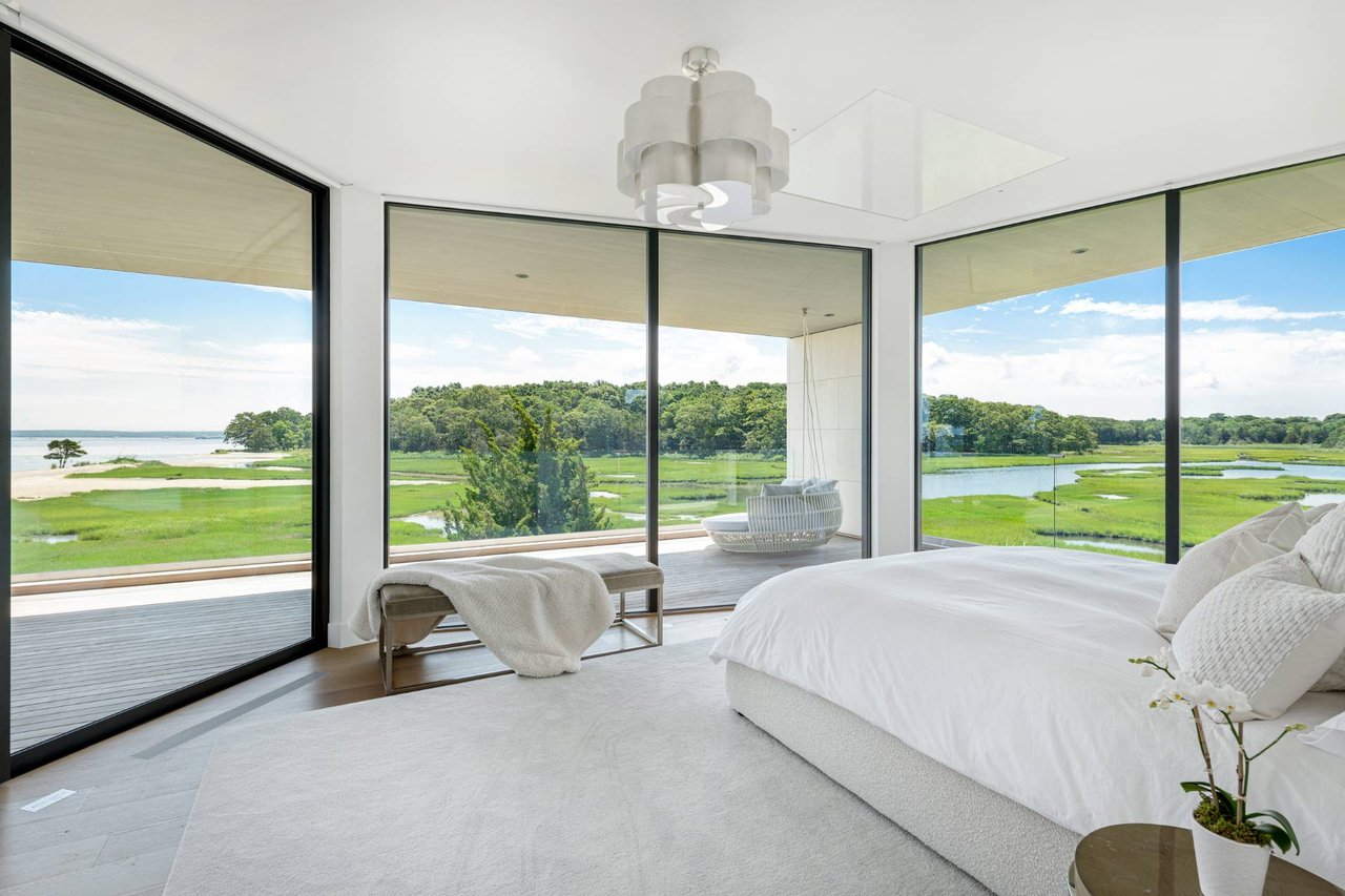 Request InfoNewly constructed and stunning, this truly special waterfront modern home is set on 1.7 of the most spectacular acres you will find. Sited on the edge of Sag Harbor Bay and nestled in amongst a pristine tidal estuary, this light filled home features six bedroom suites set across 6000+/- square feet of finished living space on three levels, all serviced by elevator. A generous primary suite situated on the main level has floor to ceiling glass, and a private covered terrace with sweeping views from sunrise to sunset, and literally not a neighbor in sight. There are an additional three guest suites on this level as well. Upstairs, one is awed upon reaching the top of the stairs as the full scope of the vista comes into play. An open concept living room leads to the kitchen and dining areas, all surrounded by expansive fixed-glass and sliding doors that allow for true indoor-outdoor experiences with what are simply some of the most unique and special views on the East End. The gourmet chefs kitchen features spectacular Italian stone selected specifically to complement the natural scenic beauty outside, and is anchored by a luxurious Officine Gullo range. Outside, the expansive decks feature an elevated pool, open spaces for lounging in the sun, and magnificent covered dining. At garden level are two additional large family suites, a media and recreation space, and a waterfront gym with outdoor six-person barrel sauna and cold plunge. Exiting through the beautifully manicured lawn is a private walkway to the bayfront beach, perfect for a relaxing lunch at your own picnic table in the sand. There simply is no other offering like this to be found. Spectacular.
