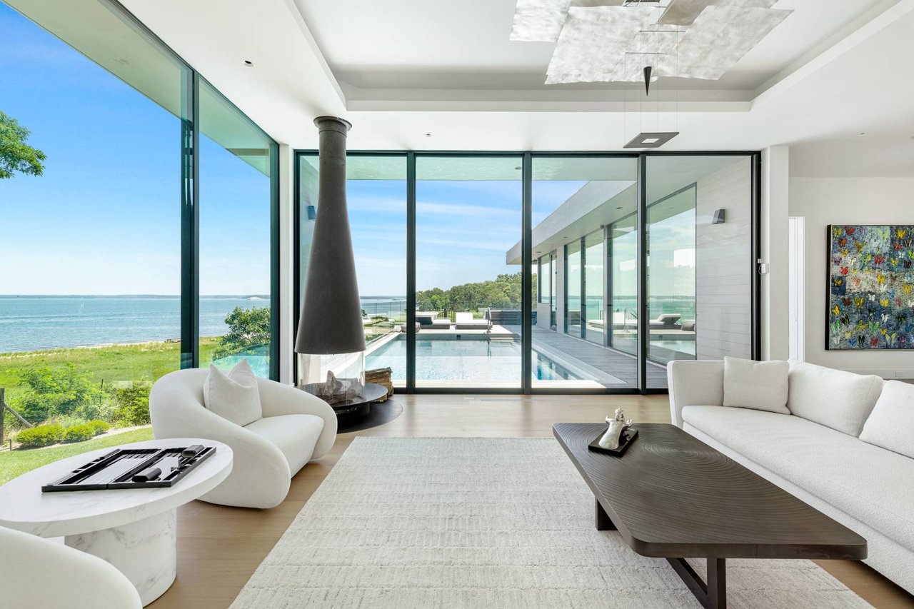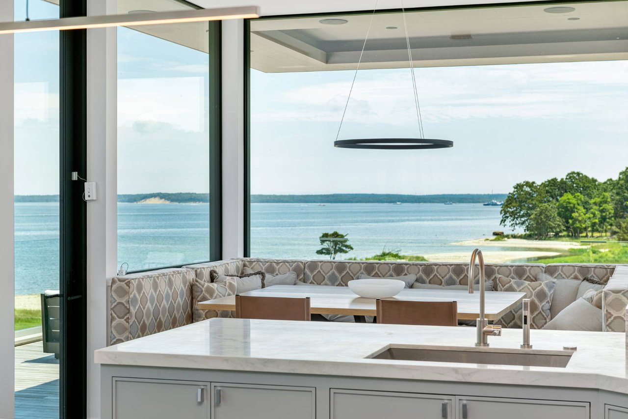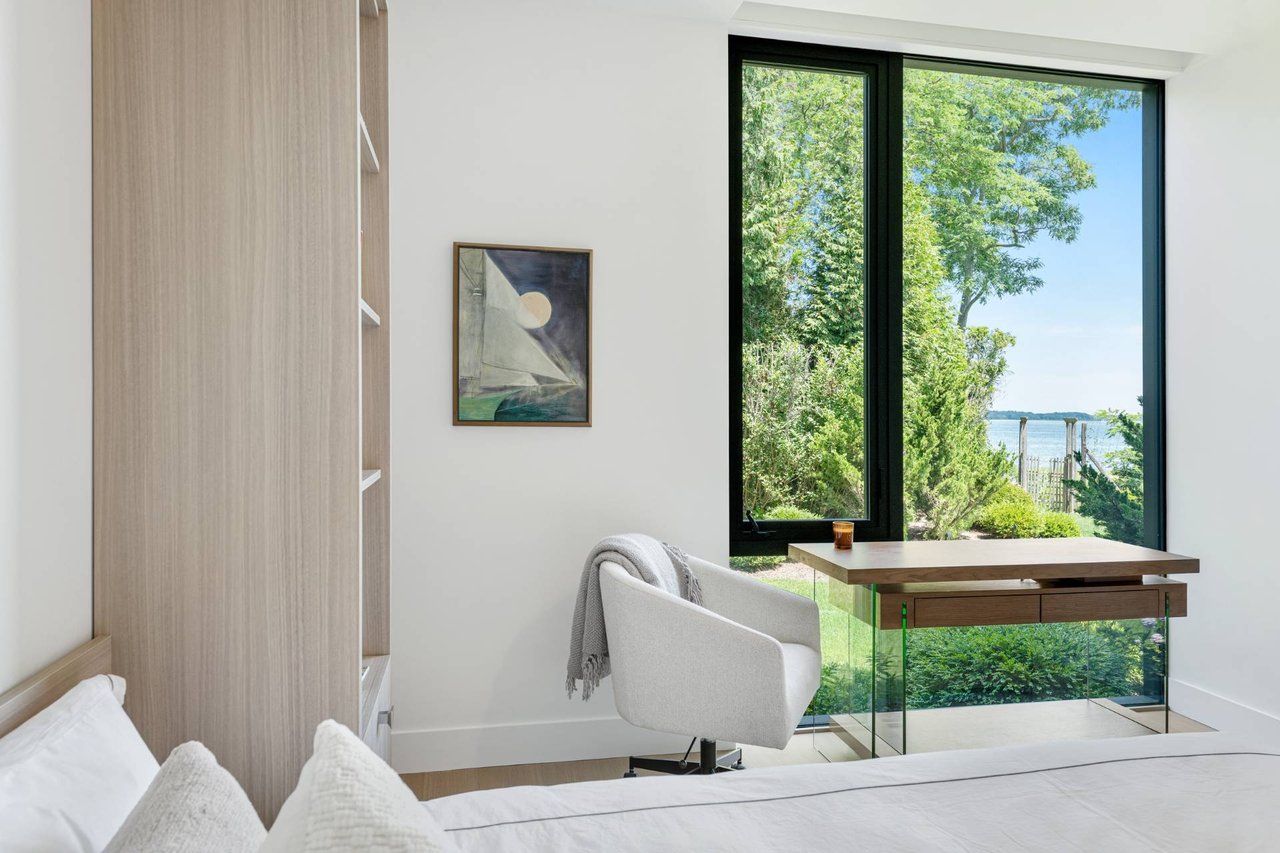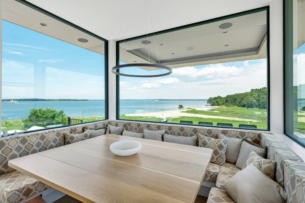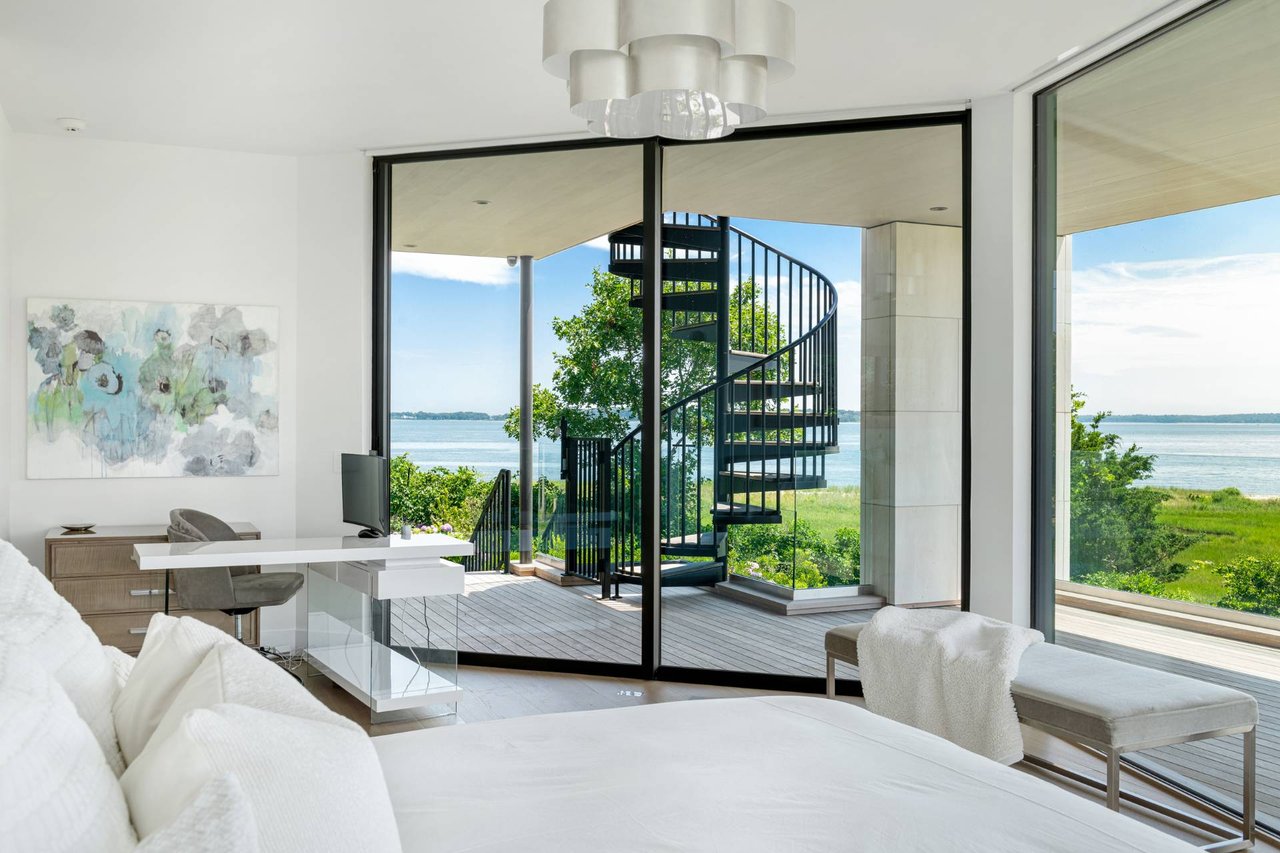 Request InfoNewly constructed and stunning, this truly special waterfront modern home is set on 1.7 of the most spectacular acres you will find. Sited on the edge of Sag Harbor Bay and nestled in amongst a pristine tidal estuary, this light filled home features six bedroom suites set across 6000+/- square feet of finished living space on three levels, all serviced by elevator. A generous primary suite situated on the main level has floor to ceiling glass, and a private covered terrace with sweeping views from sunrise to sunset, and literally not a neighbor in sight. There are an additional three guest suites on this level as well. Upstairs, one is awed upon reaching the top of the stairs as the full scope of the vista comes into play. An open concept living room leads to the kitchen and dining areas, all surrounded by expansive fixed-glass and sliding doors that allow for true indoor-outdoor experiences with what are simply some of the most unique and special views on the East End. The gourmet chefs kitchen features spectacular Italian stone selected specifically to complement the natural scenic beauty outside, and is anchored by a luxurious Officine Gullo range. Outside, the expansive decks feature an elevated pool, open spaces for lounging in the sun, and magnificent covered dining. At garden level are two additional large family suites, a media and recreation space, and a waterfront gym with outdoor six-person barrel sauna and cold plunge. Exiting through the beautifully manicured lawn is a private walkway to the bayfront beach, perfect for a relaxing lunch at your own picnic table in the sand. There simply is no other offering like this to be found. Spectacular.