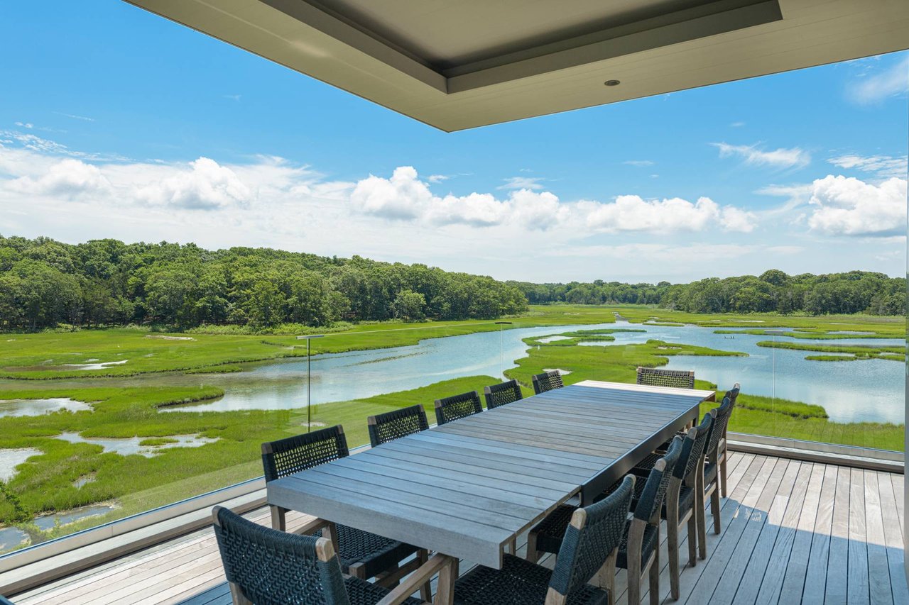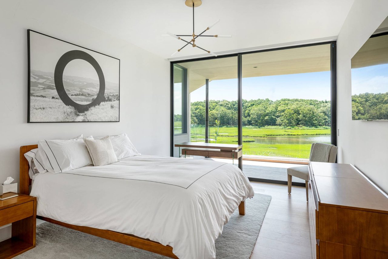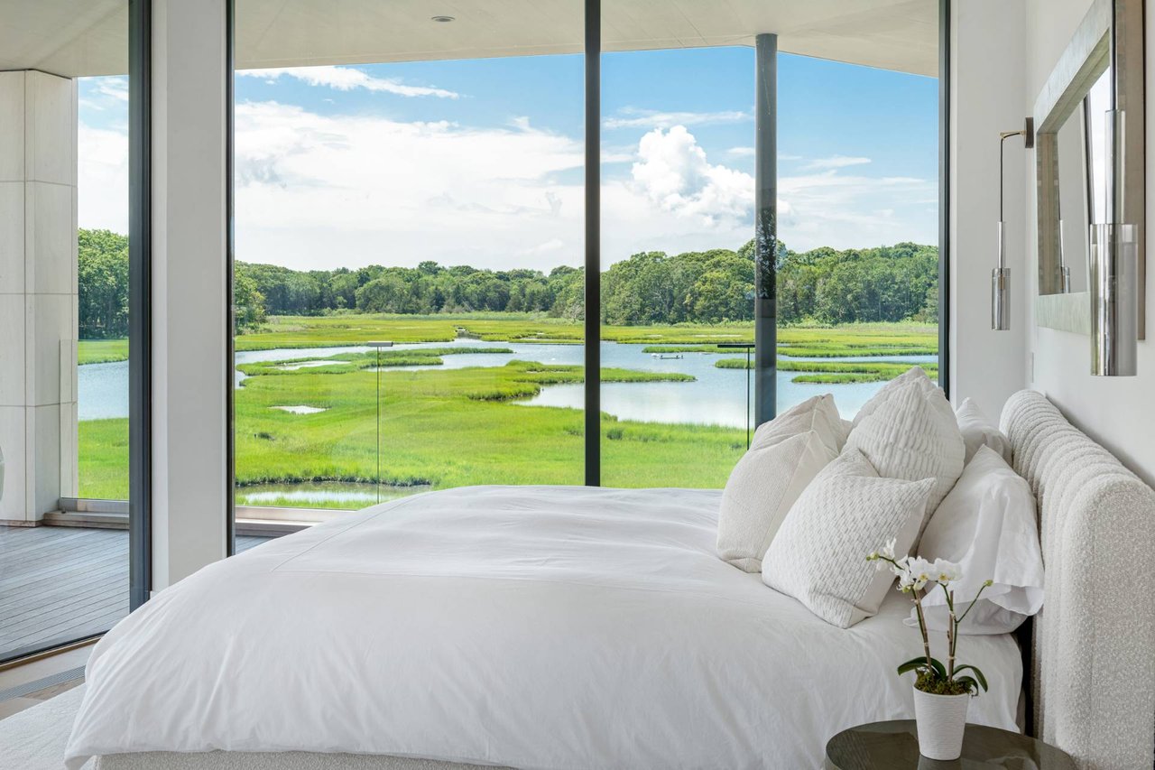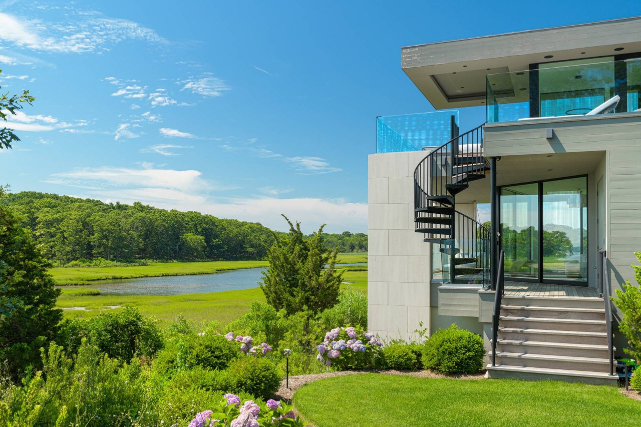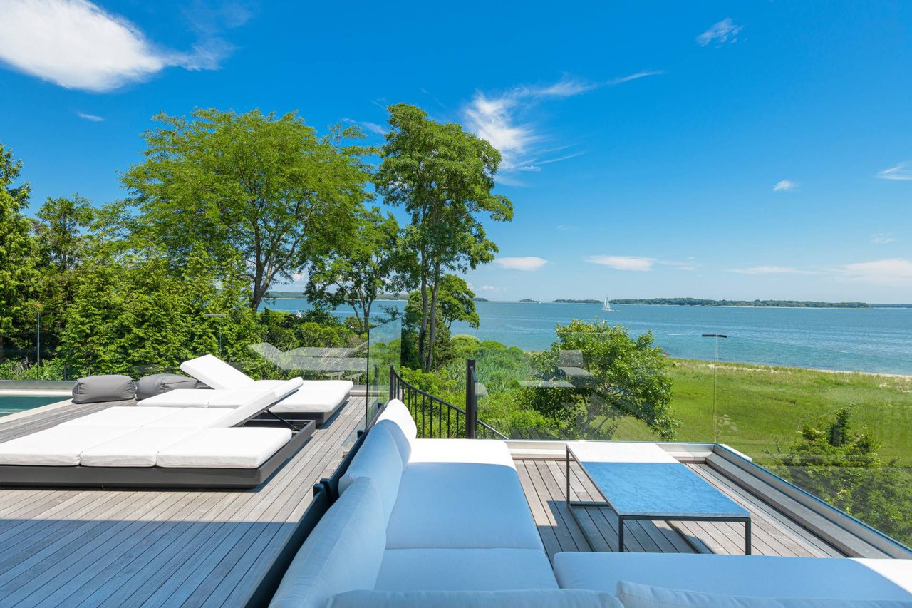 Request InfoNewly constructed and stunning, this truly special waterfront modern home is set on 1.7 of the most spectacular acres you will find. Sited on the edge of Sag Harbor Bay and nestled in amongst a pristine tidal estuary, this light filled home features six bedroom suites set across 6000+/- square feet of finished living space on three levels, all serviced by elevator. A generous primary suite situated on the main level has floor to ceiling glass, and a private covered terrace with sweeping views from sunrise to sunset, and literally not a neighbor in sight. There are an additional three guest suites on this level as well. Upstairs, one is awed upon reaching the top of the stairs as the full scope of the vista comes into play. An open concept living room leads to the kitchen and dining areas, all surrounded by expansive fixed-glass and sliding doors that allow for true indoor-outdoor experiences with what are simply some of the most unique and special views on the East End. The gourmet chefs kitchen features spectacular Italian stone selected specifically to complement the natural scenic beauty outside, and is anchored by a luxurious Officine Gullo range. Outside, the expansive decks feature an elevated pool, open spaces for lounging in the sun, and magnificent covered dining. At garden level are two additional large family suites, a media and recreation space, and a waterfront gym with outdoor six-person barrel sauna and cold plunge. Exiting through the beautifully manicured lawn is a private walkway to the bayfront beach, perfect for a relaxing lunch at your own picnic table in the sand. There simply is no other offering like this to be found. Spectacular.