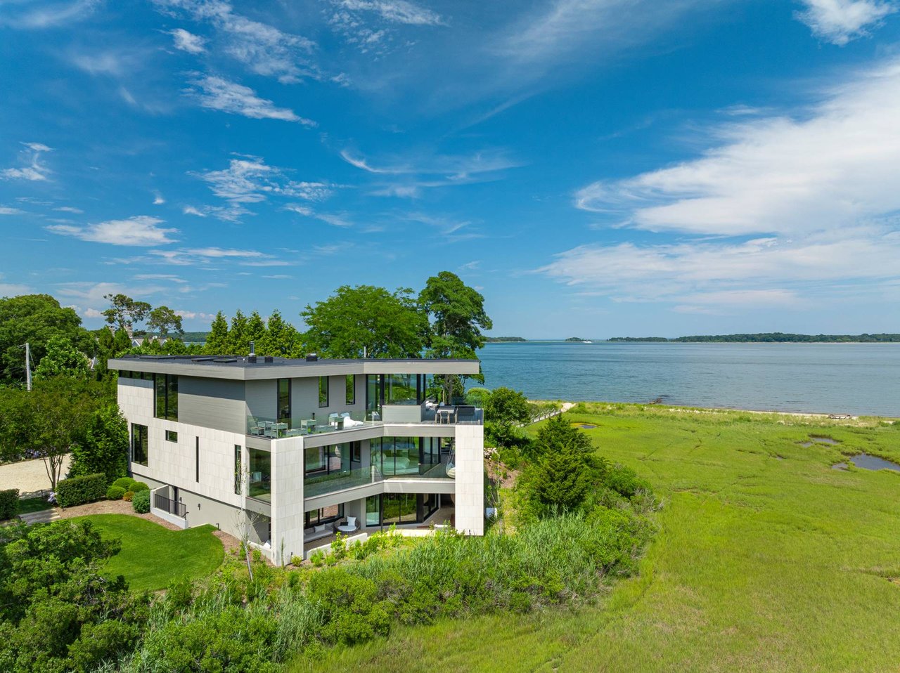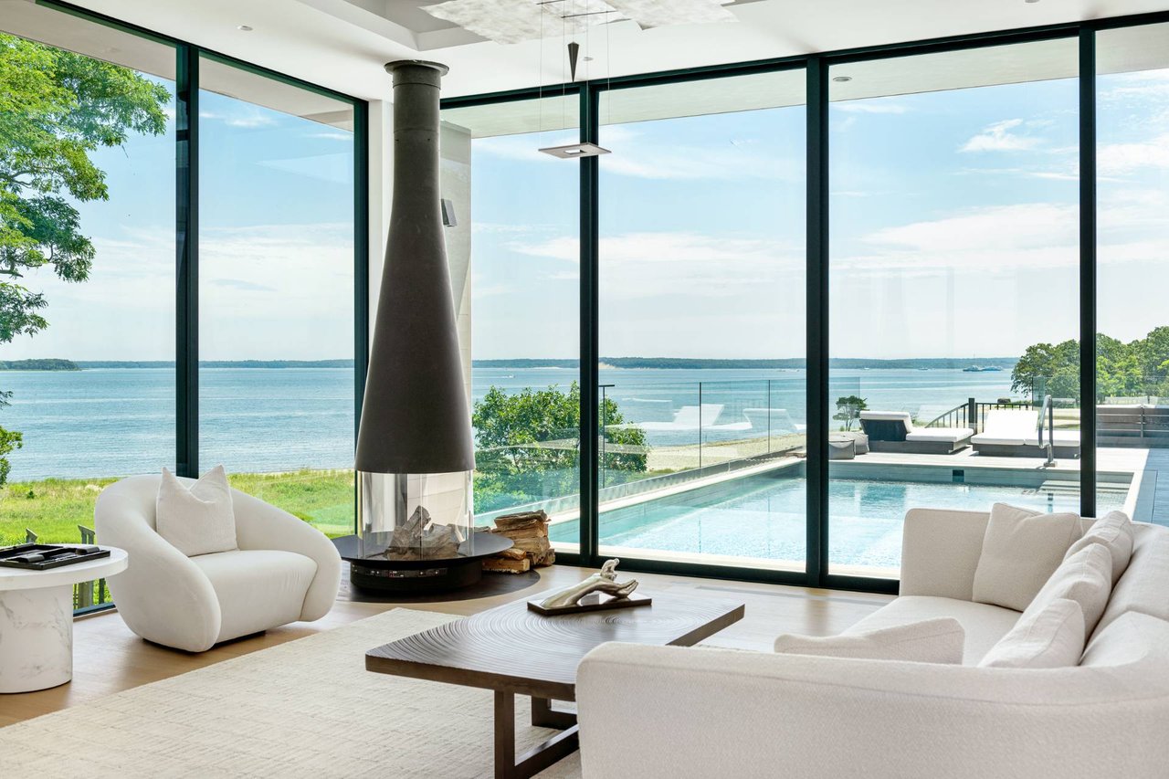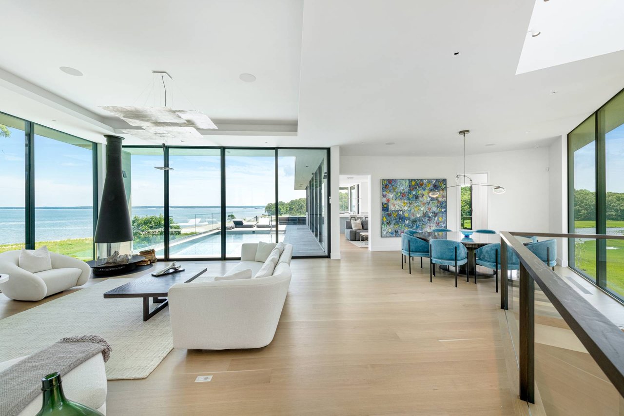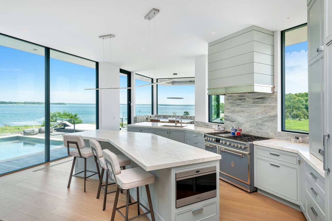 Request InfoNewly constructed and stunning, this truly special waterfront modern home is set on 1.7 of the most spectacular acres you will find. Sited on the edge of Sag Harbor Bay and nestled in amongst a pristine tidal estuary, this light filled home features six bedroom suites set across 6000+/- square feet of finished living space on three levels, all serviced by elevator. A generous primary suite situated on the main level has floor to ceiling glass, and a private covered terrace with sweeping views from sunrise to sunset, and literally not a neighbor in sight. There are an additional three guest suites on this level as well. Upstairs, one is awed upon reaching the top of the stairs as the full scope of the vista comes into play. An open concept living room leads to the kitchen and dining areas, all surrounded by expansive fixed-glass and sliding doors that allow for true indoor-outdoor experiences with what are simply some of the most unique and special views on the East End. The gourmet chefs kitchen features spectacular Italian stone selected specifically to complement the natural scenic beauty outside, and is anchored by a luxurious Officine Gullo range. Outside, the expansive decks feature an elevated pool, open spaces for lounging in the sun, and magnificent covered dining. At garden level are two additional large family suites, a media and recreation space, and a waterfront gym with outdoor six-person barrel sauna and cold plunge. Exiting through the beautifully manicured lawn is a private walkway to the bayfront beach, perfect for a relaxing lunch at your own picnic table in the sand. There simply is no other offering like this to be found. Spectacular.