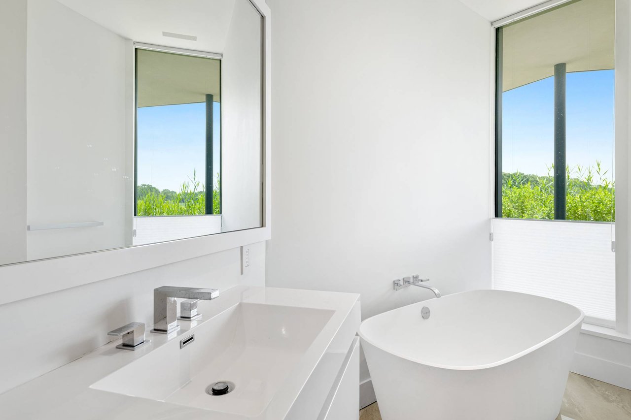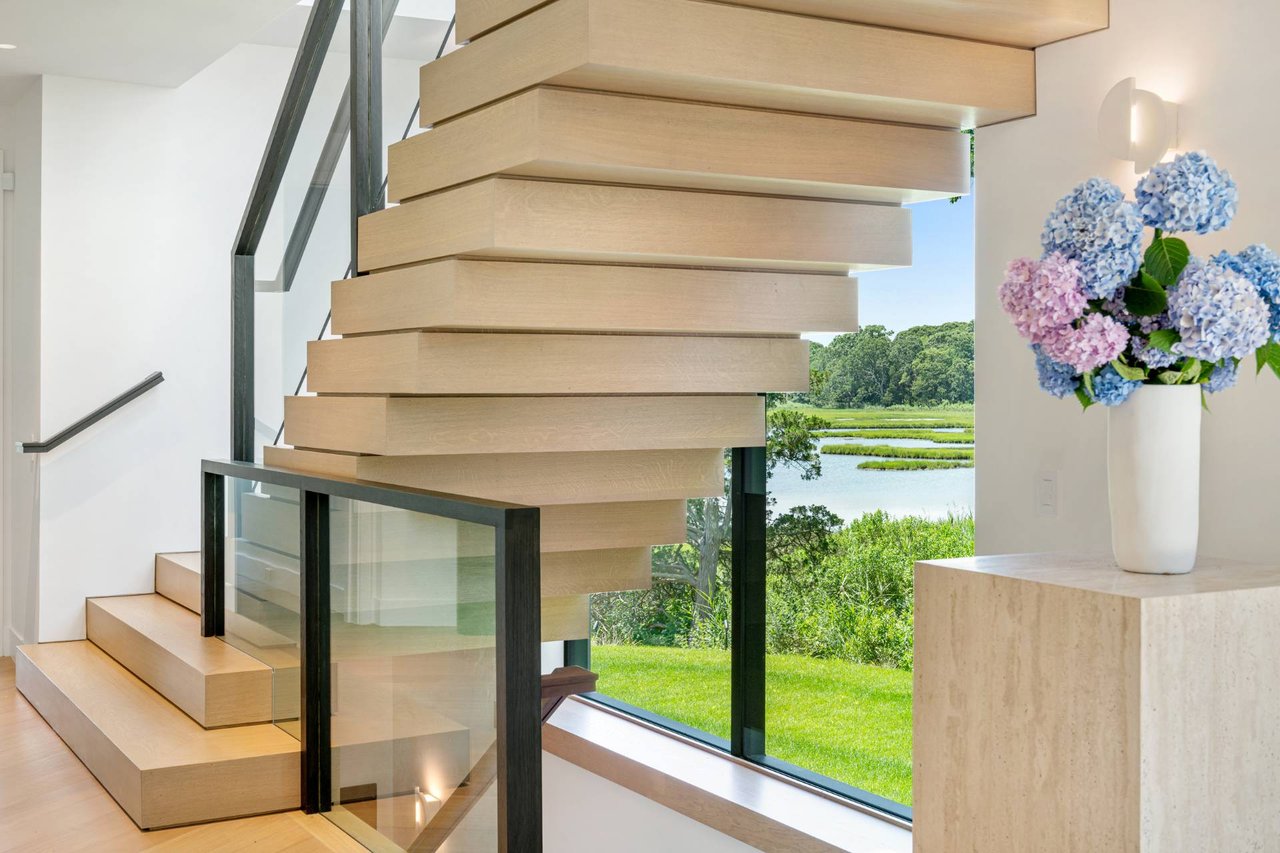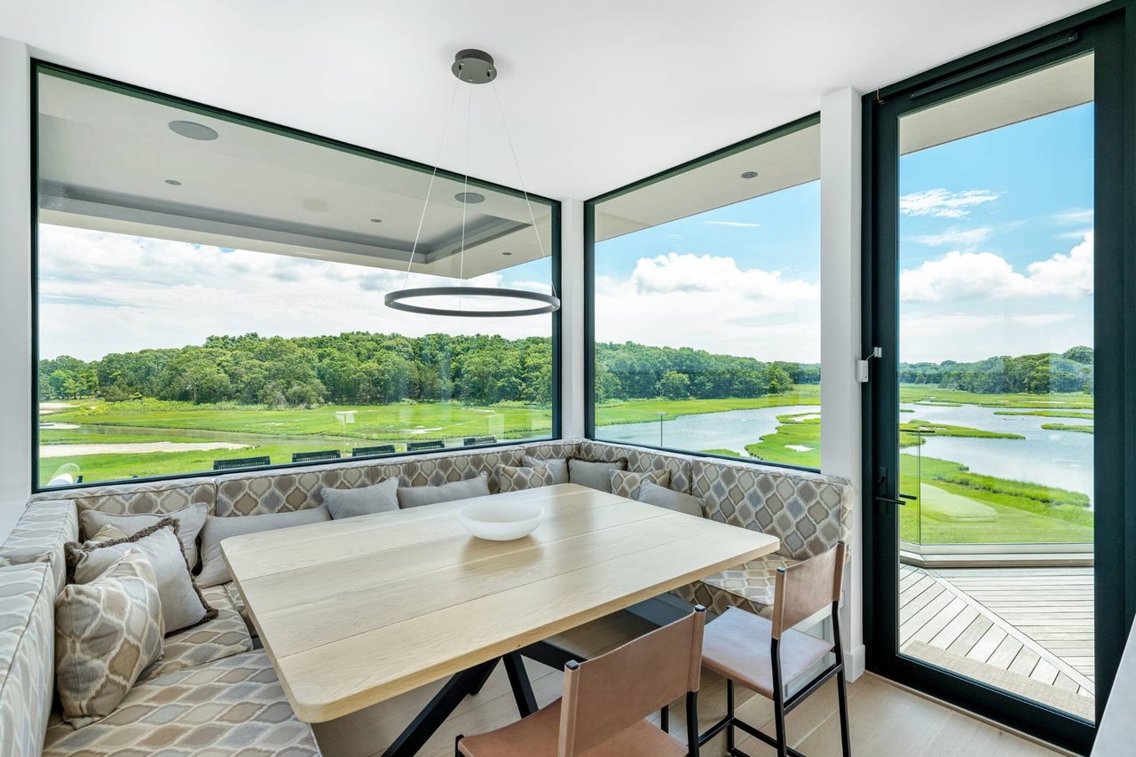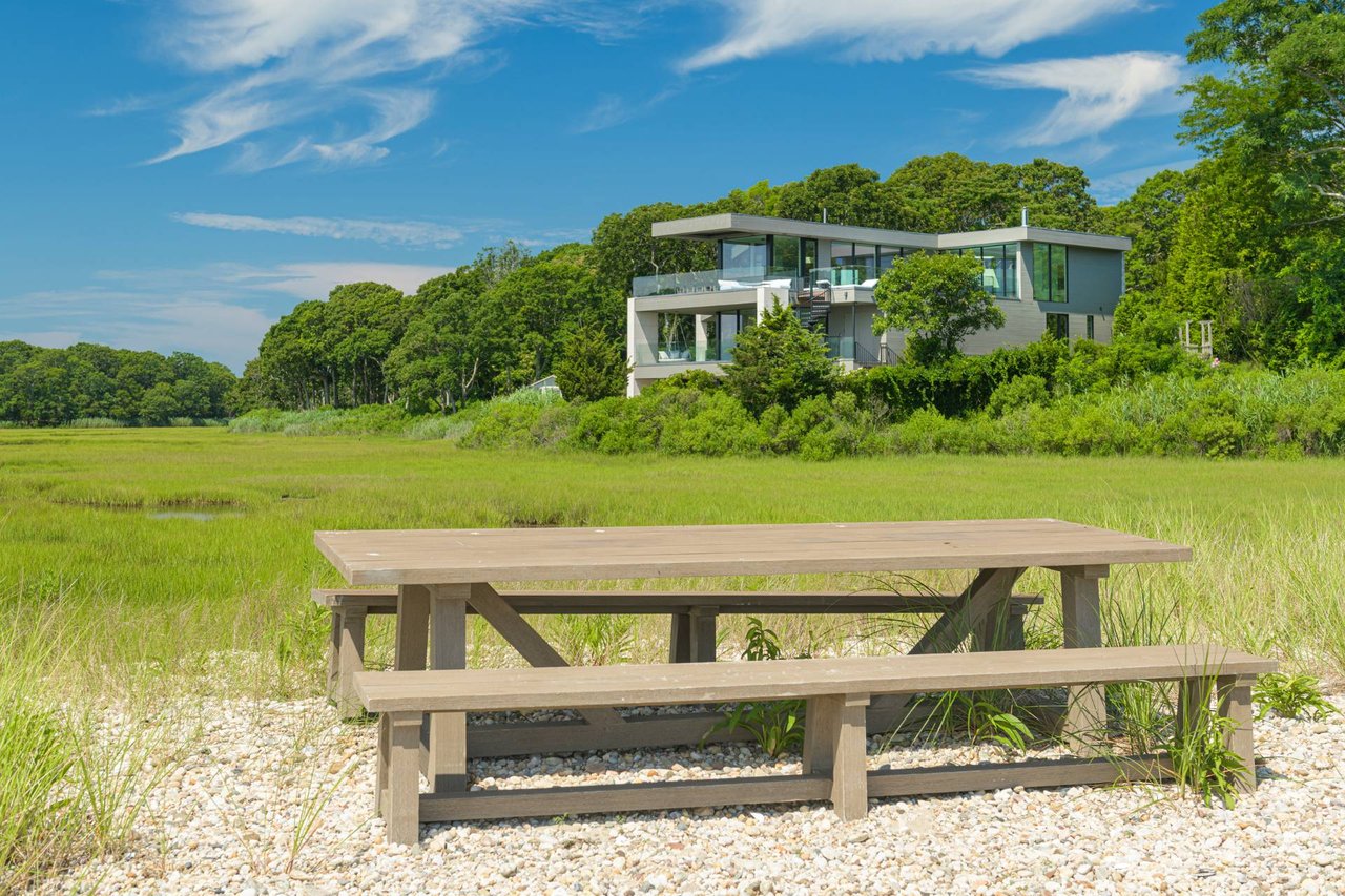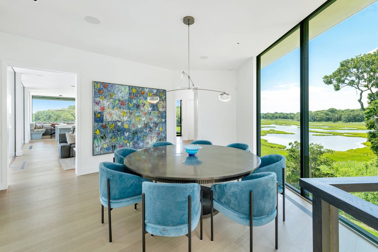 Request InfoNewly constructed and stunning, this truly special waterfront modern home is set on 1.7 of the most spectacular acres you will find. Sited on the edge of Sag Harbor Bay and nestled in amongst a pristine tidal estuary, this light filled home features six bedroom suites set across 6000+/- square feet of finished living space on three levels, all serviced by elevator. A generous primary suite situated on the main level has floor to ceiling glass, and a private covered terrace with sweeping views from sunrise to sunset, and literally not a neighbor in sight. There are an additional three guest suites on this level as well. Upstairs, one is awed upon reaching the top of the stairs as the full scope of the vista comes into play. An open concept living room leads to the kitchen and dining areas, all surrounded by expansive fixed-glass and sliding doors that allow for true indoor-outdoor experiences with what are simply some of the most unique and special views on the East End. The gourmet chefs kitchen features spectacular Italian stone selected specifically to complement the natural scenic beauty outside, and is anchored by a luxurious Officine Gullo range. Outside, the expansive decks feature an elevated pool, open spaces for lounging in the sun, and magnificent covered dining. At garden level are two additional large family suites, a media and recreation space, and a waterfront gym with outdoor six-person barrel sauna and cold plunge. Exiting through the beautifully manicured lawn is a private walkway to the bayfront beach, perfect for a relaxing lunch at your own picnic table in the sand. There simply is no other offering like this to be found. Spectacular.