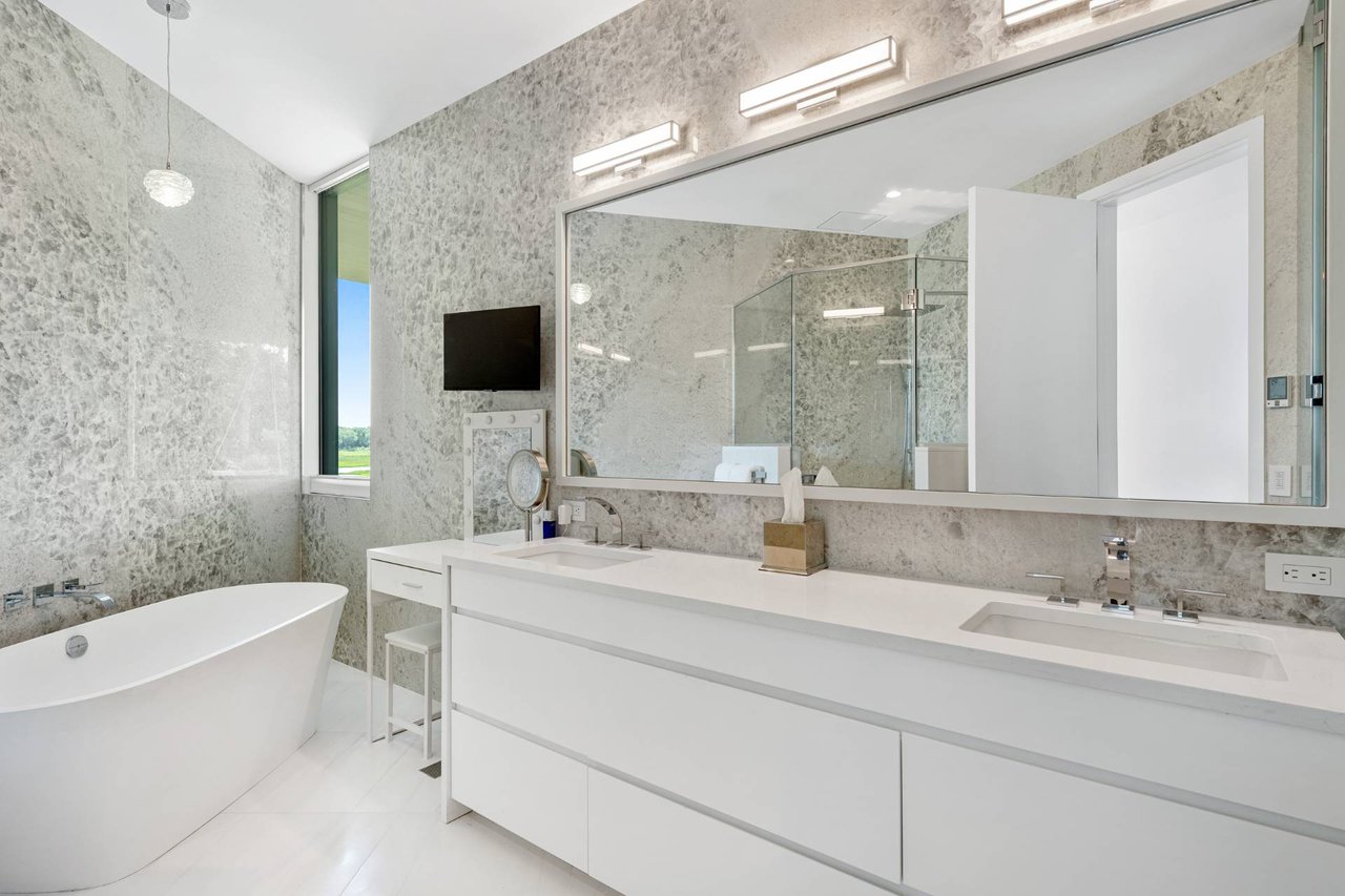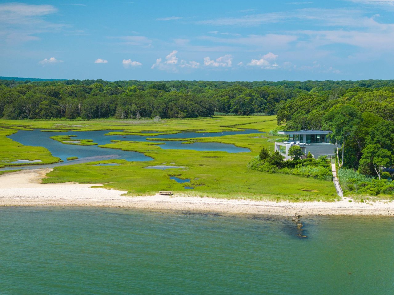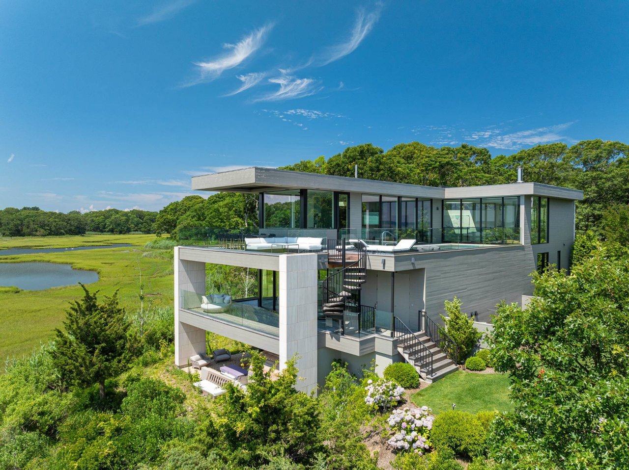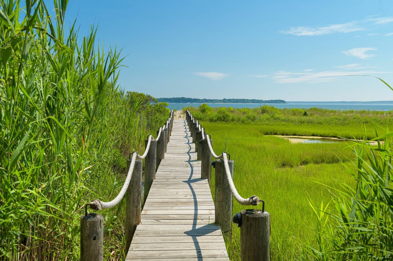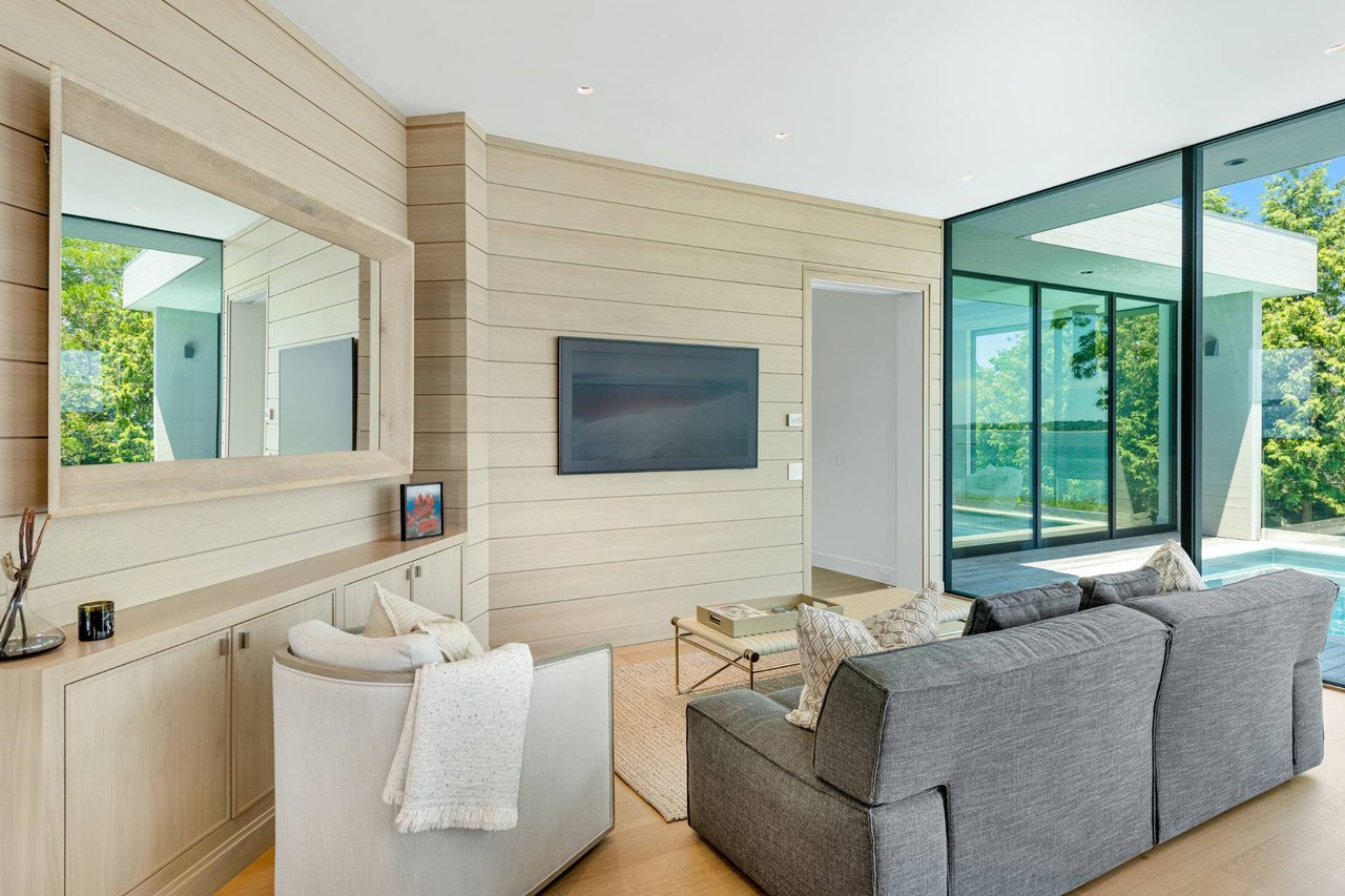 Request InfoNewly constructed and stunning, this truly special waterfront modern home is set on 1.7 of the most spectacular acres you will find. Sited on the edge of Sag Harbor Bay and nestled in amongst a pristine tidal estuary, this light filled home features six bedroom suites set across 6000+/- square feet of finished living space on three levels, all serviced by elevator. A generous primary suite situated on the main level has floor to ceiling glass, and a private covered terrace with sweeping views from sunrise to sunset, and literally not a neighbor in sight. There are an additional three guest suites on this level as well. Upstairs, one is awed upon reaching the top of the stairs as the full scope of the vista comes into play. An open concept living room leads to the kitchen and dining areas, all surrounded by expansive fixed-glass and sliding doors that allow for true indoor-outdoor experiences with what are simply some of the most unique and special views on the East End. The gourmet chefs kitchen features spectacular Italian stone selected specifically to complement the natural scenic beauty outside, and is anchored by a luxurious Officine Gullo range. Outside, the expansive decks feature an elevated pool, open spaces for lounging in the sun, and magnificent covered dining. At garden level are two additional large family suites, a media and recreation space, and a waterfront gym with outdoor six-person barrel sauna and cold plunge. Exiting through the beautifully manicured lawn is a private walkway to the bayfront beach, perfect for a relaxing lunch at your own picnic table in the sand. There simply is no other offering like this to be found. Spectacular.