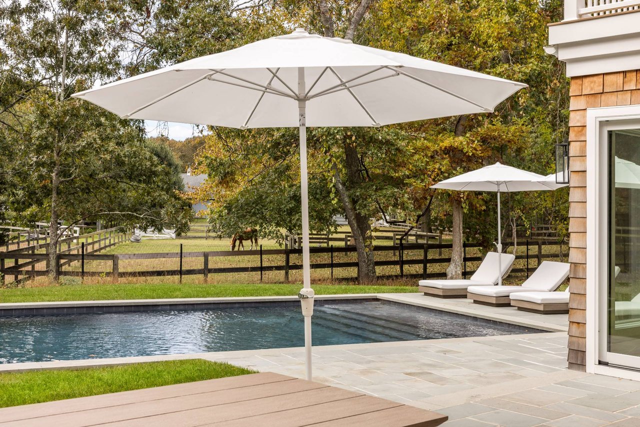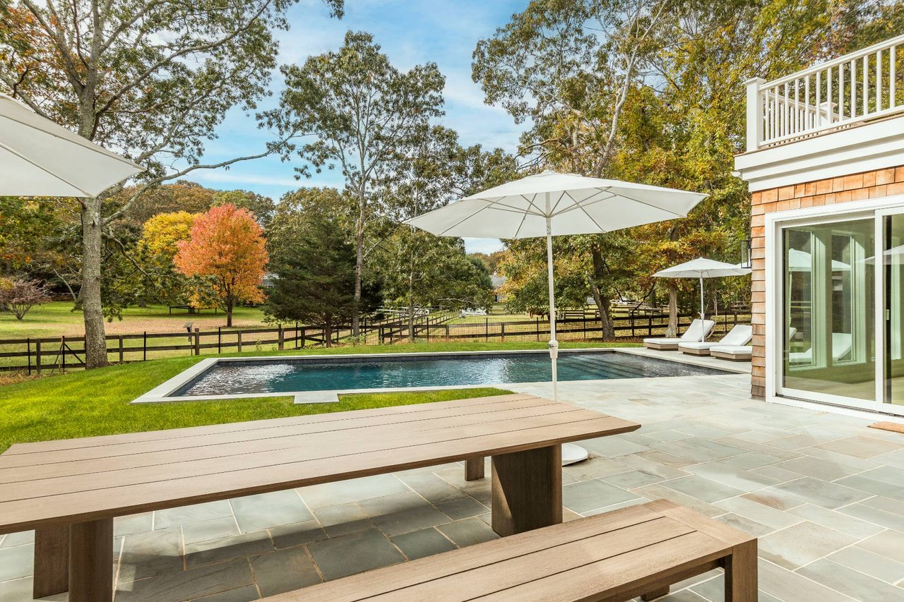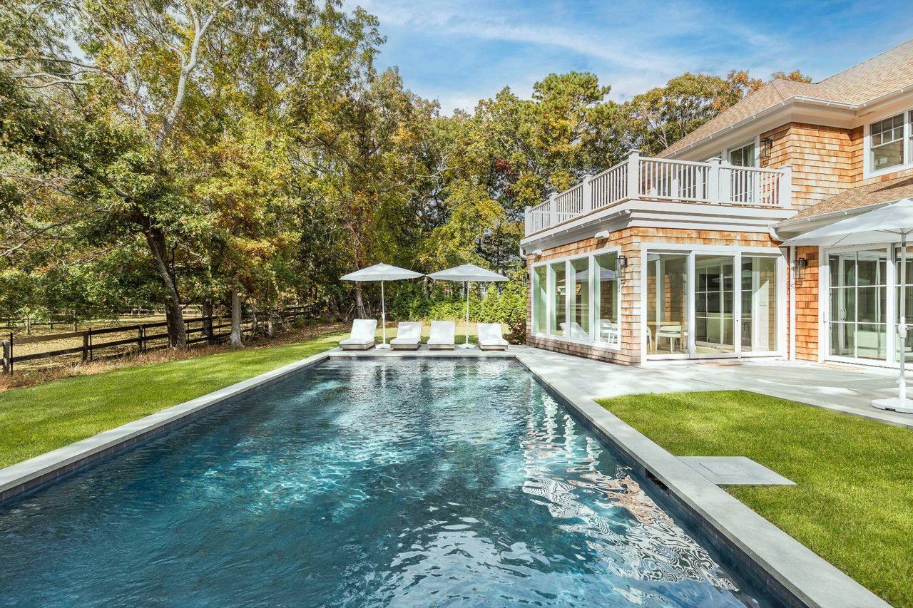 Request InfoLocated at the end of a quiet cul-de-sac with rear southern exposure and borders scenic green equestrian fields. This custom six-bedroom, five and one-half bath house has all the details for luxury living. Each room is its own showcase of fine finishes and top-of-the-line fixtures and appliances. This architectural masterpiece is designed with the discerning tenant in mind. All new stylish designer furnishings and housewares. The first floor features a light filled open floor plan, a junior primary suite, powder room, mud room, and an attached oversized car garage. Multiple entry/exits from the living, dining and junior primary bedroom, lead to a large blue stone patio in the rear for ideal transition from indoors to outdoors. The second floor features three ensuite bedrooms inclusive of the primary suite with private terrace overlooking rear yard, pool area and the neighboring pastoral equestrian fields. Primary suite has large walk in closet. The finished lower level features two bedrooms and one full bathroom, sizeable recreation area, ample storage and mechanical room. Rounding out the property is a 18' x 36' in ground gunite heated pool with large sun deck. Located approximately one mile from village of East Hampton and all its amenities such as the pristine beach, restaurants and world class shopping. Rental Registry 24-1,059.